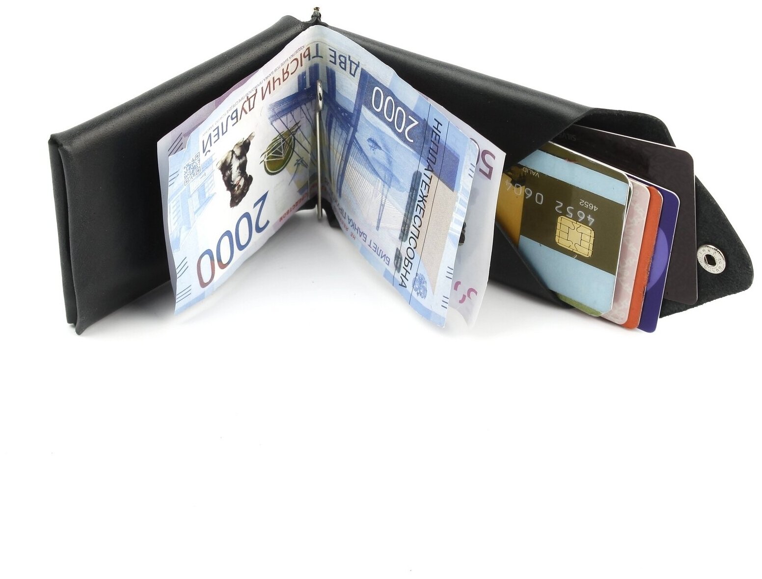 Зажим для купюр, зк300-150, натуральная кожа, цвет черный
