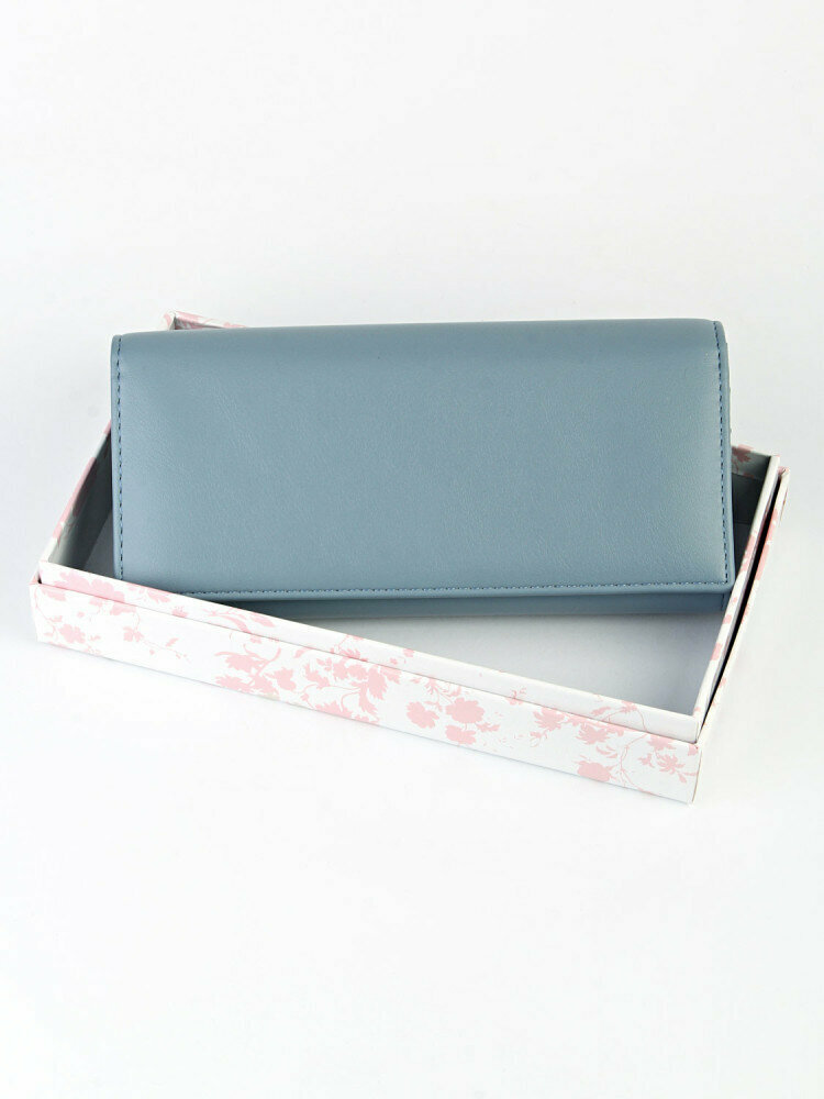 Купить Кошелек женский, экокожа, гладкая фактура, 3 отделений для банкнот, на магните, отделения для карт и монет, подарочная упаковка, голубой