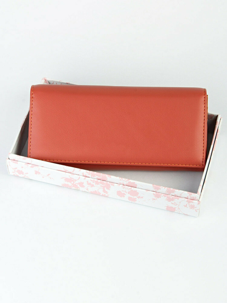 Купить Кошелек женский, экокожа, гладкая фактура, 3 отделений для банкнот, на магните, отделения для карт и монет, подарочная упаковка, коралловый