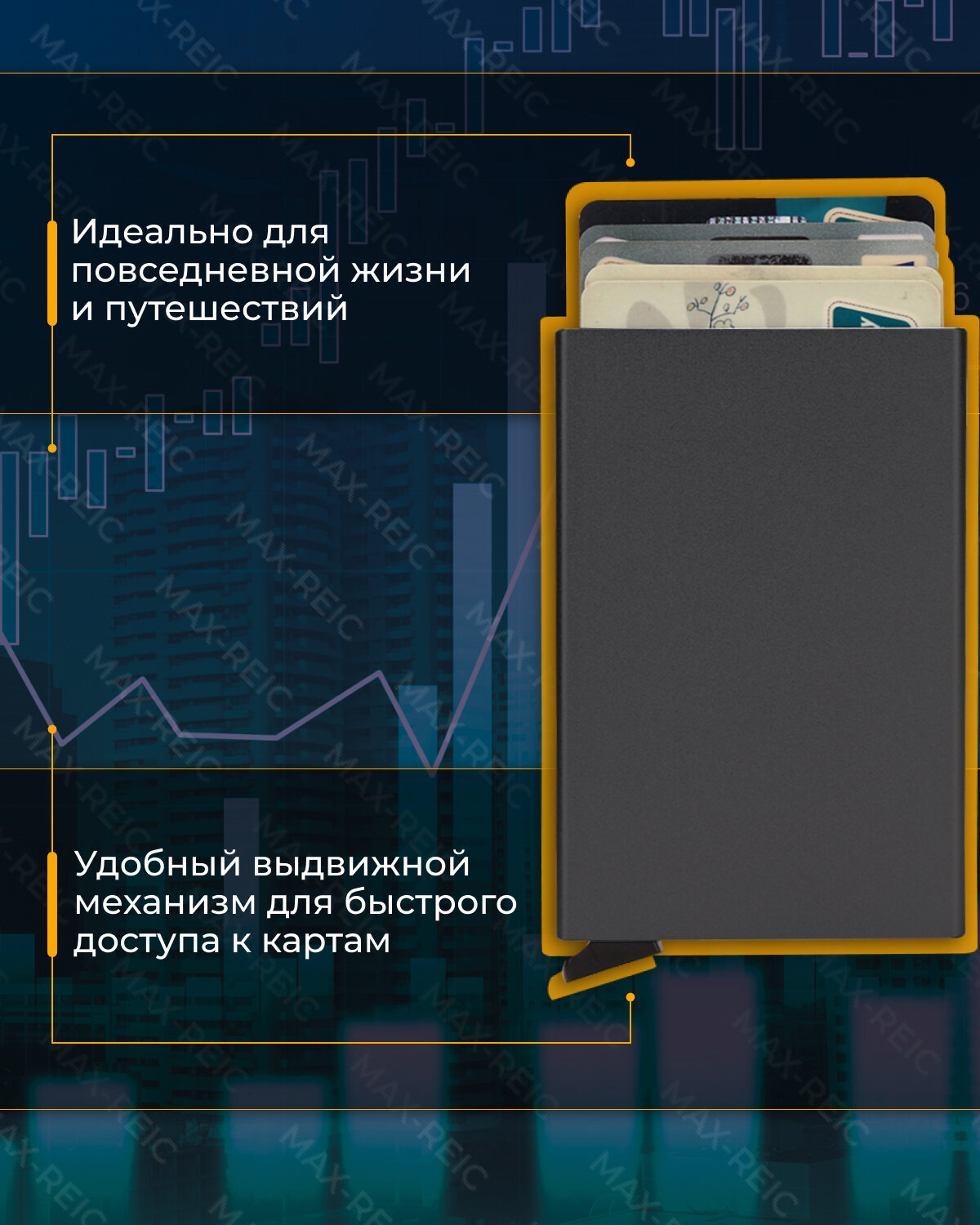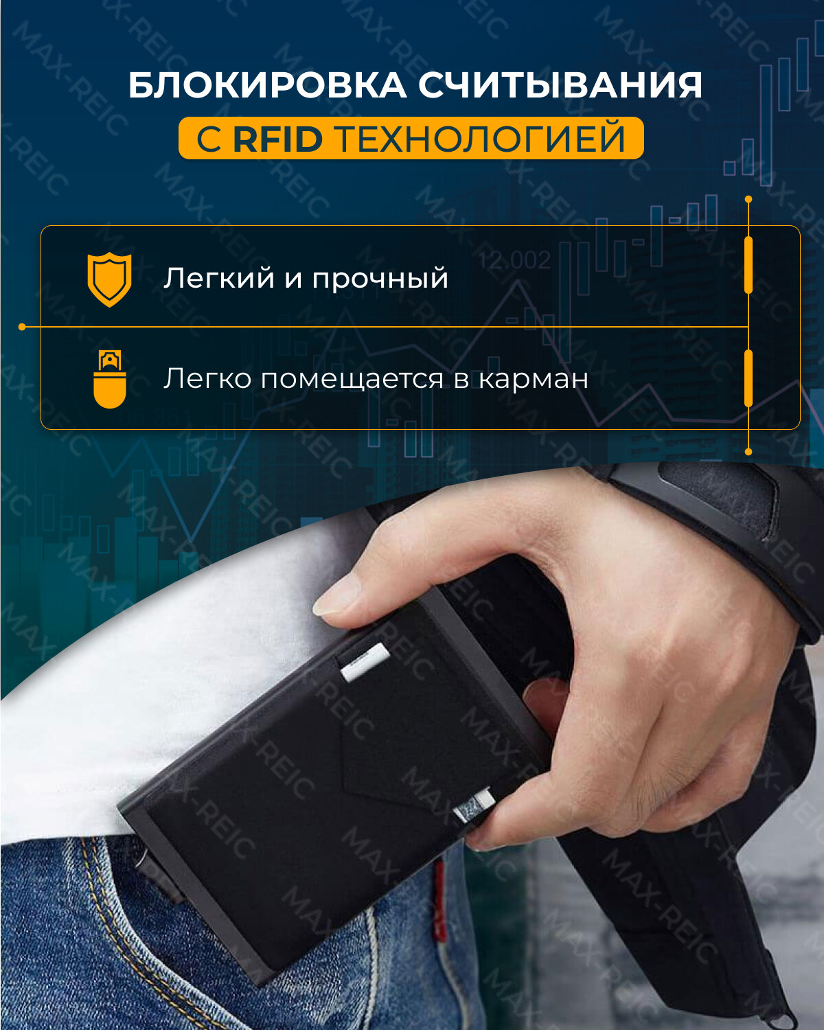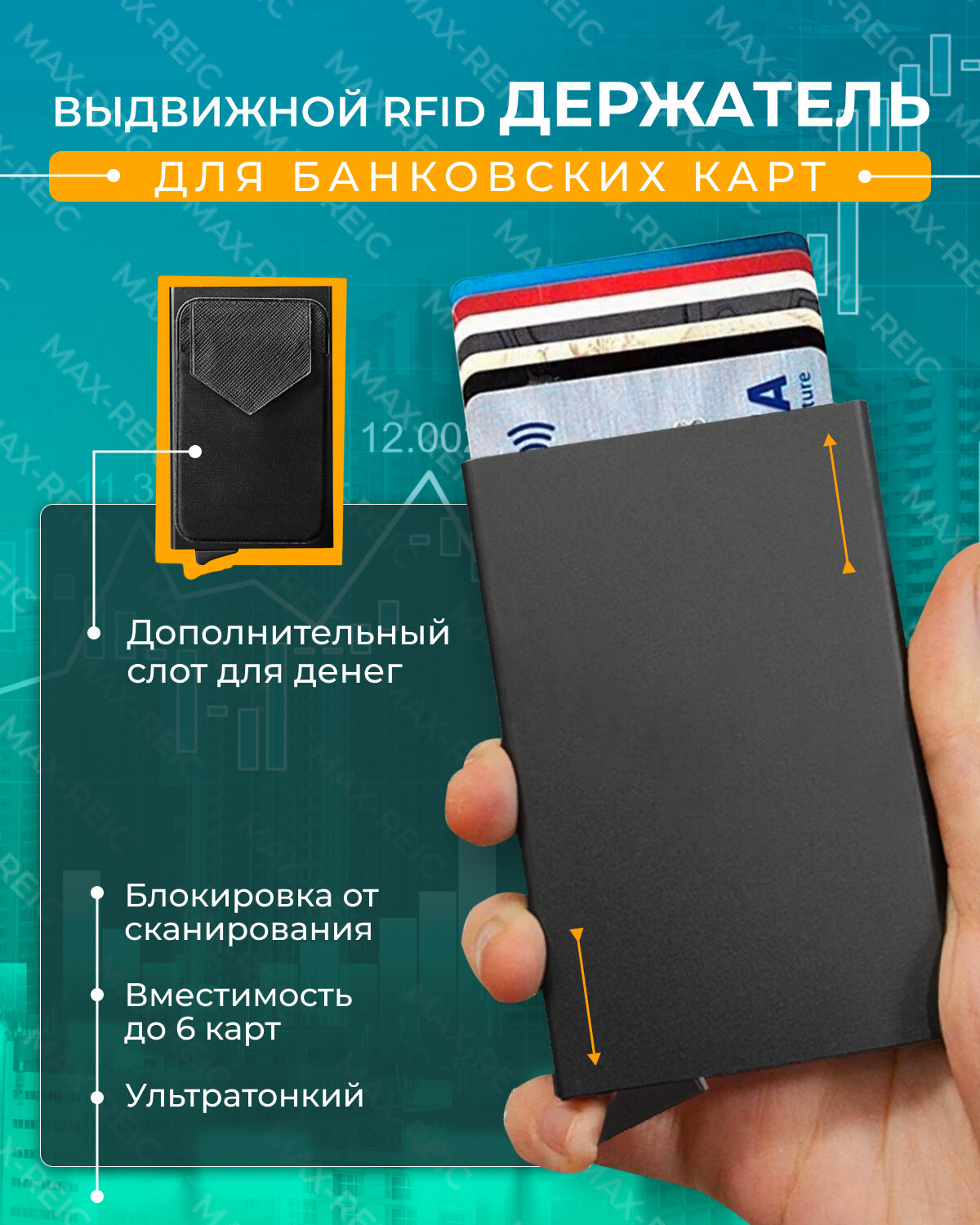 Кардхолдер R-MAX в ударопрочном алюминиевом корпусе с RFID защитой от сканирования и держателями под 8 карт, черный интересное:
