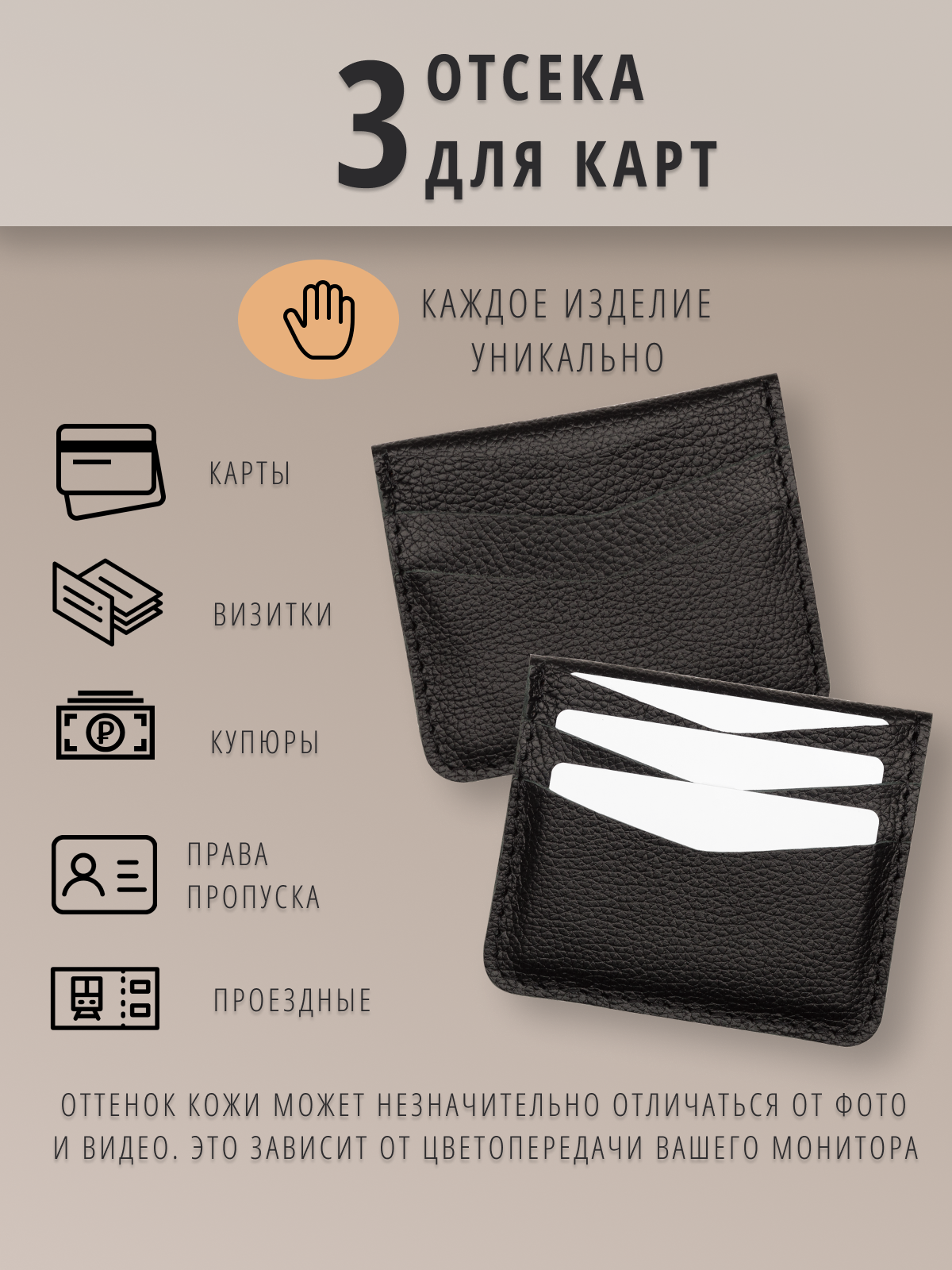 Кожаный картхолдер визитница с монетницей интересное: