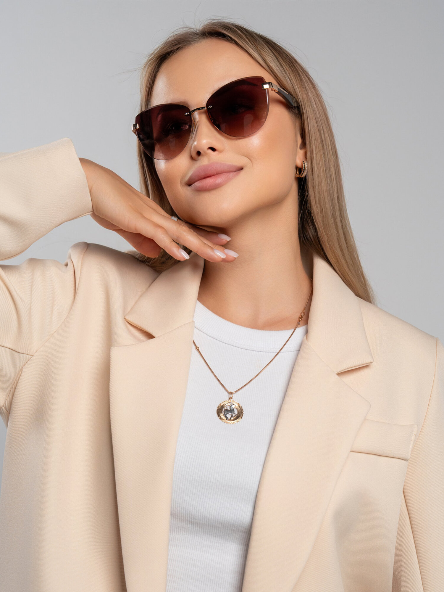 Очки солнцезащитные женские, светло-розовый, кофе с молоком