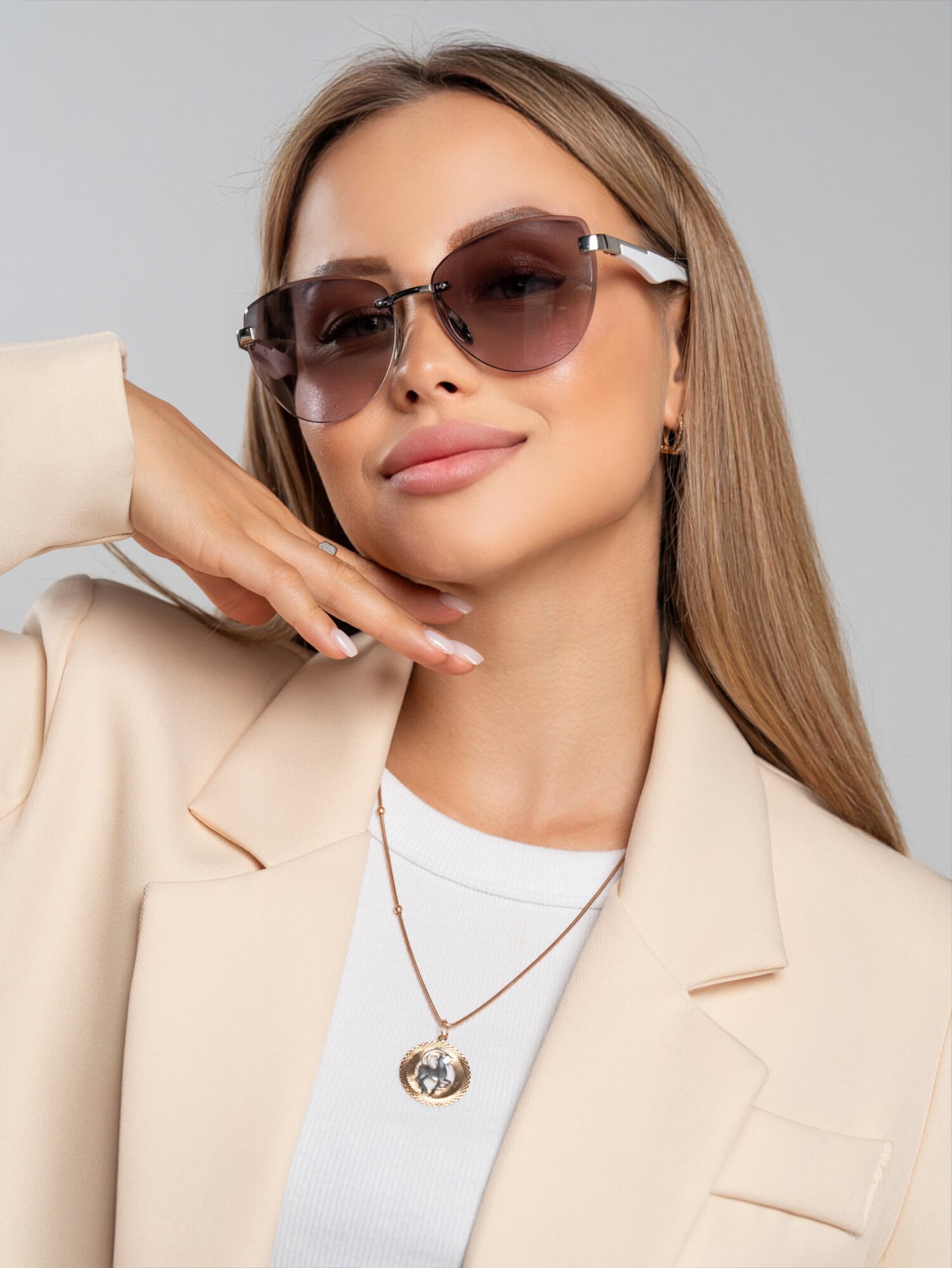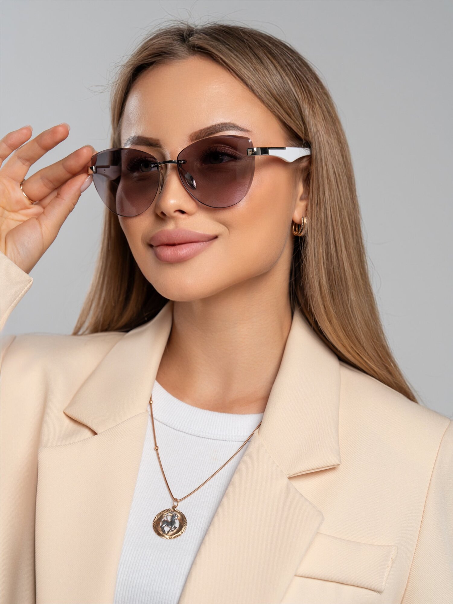 Очки солнцезащитные женские, светло-розовый, кофе с молоком