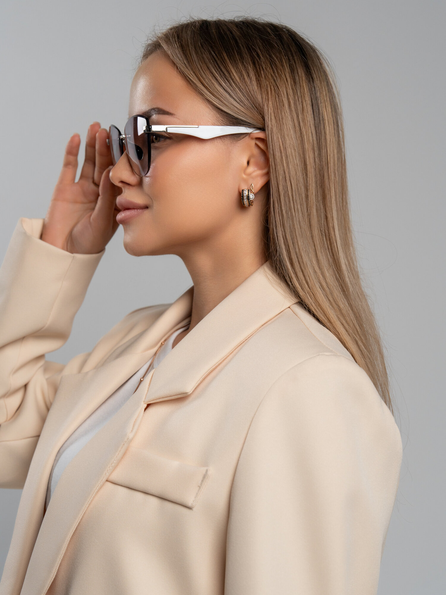 Купить Очки солнцезащитные женские, светло-серый, белый