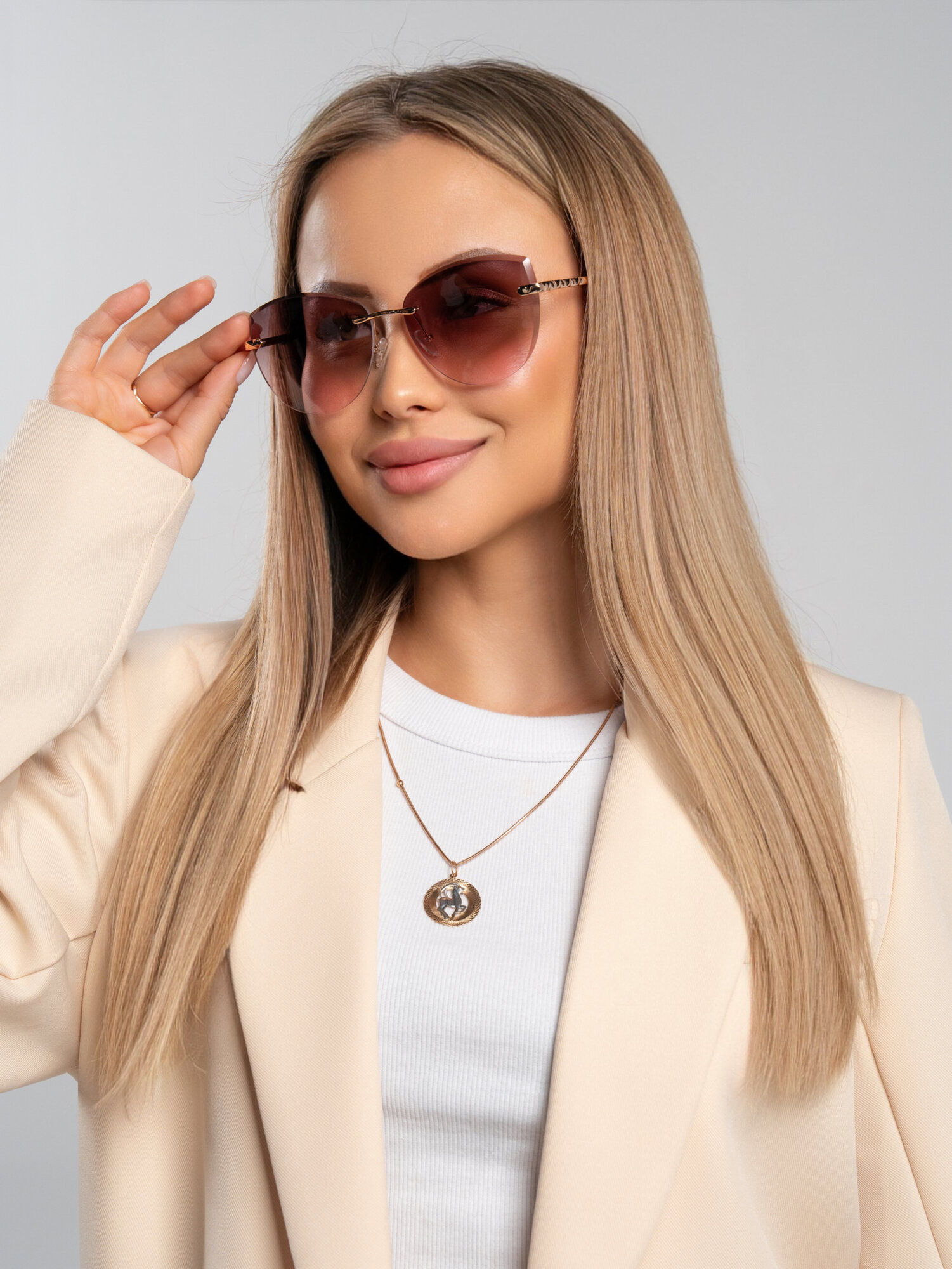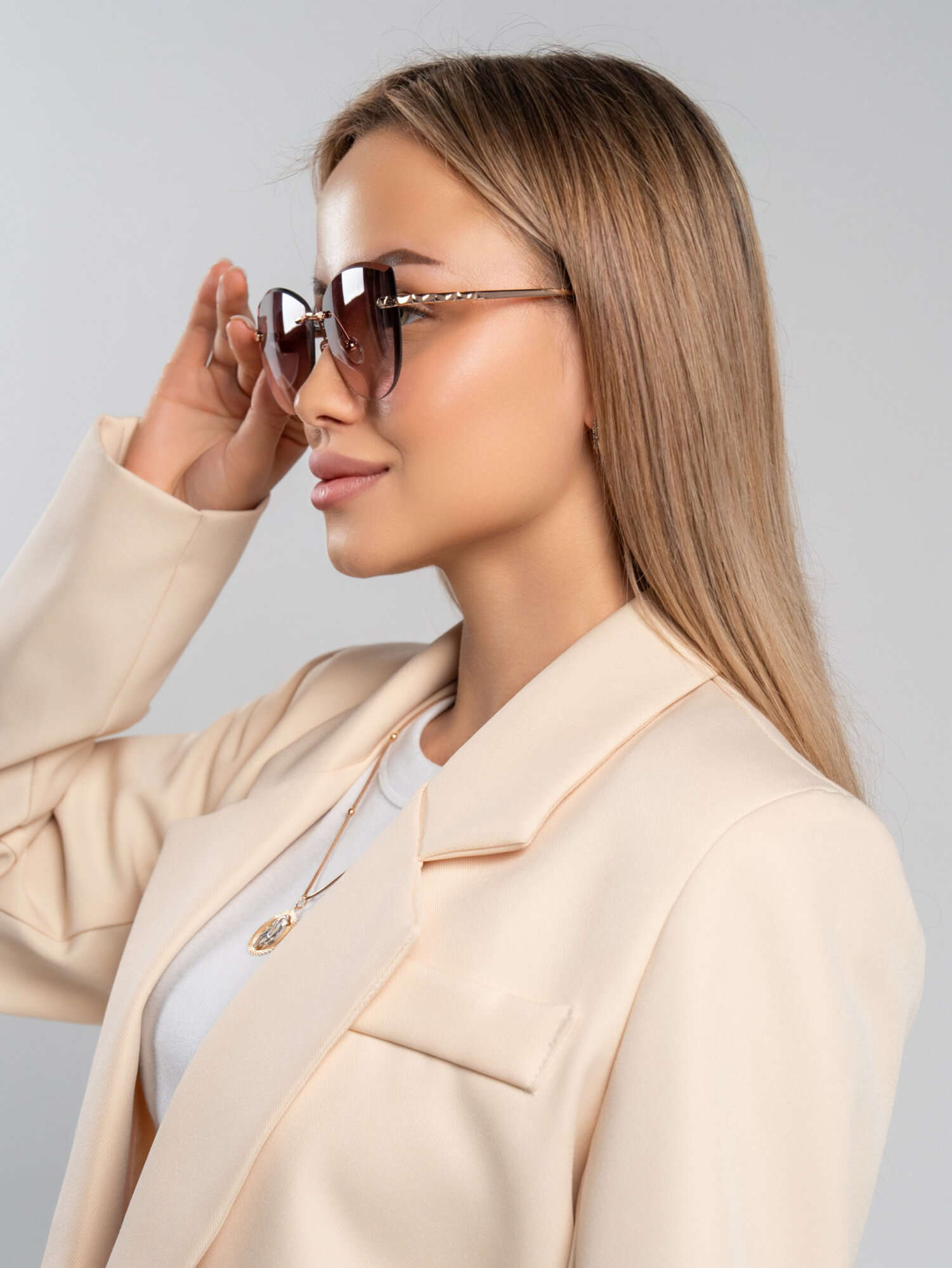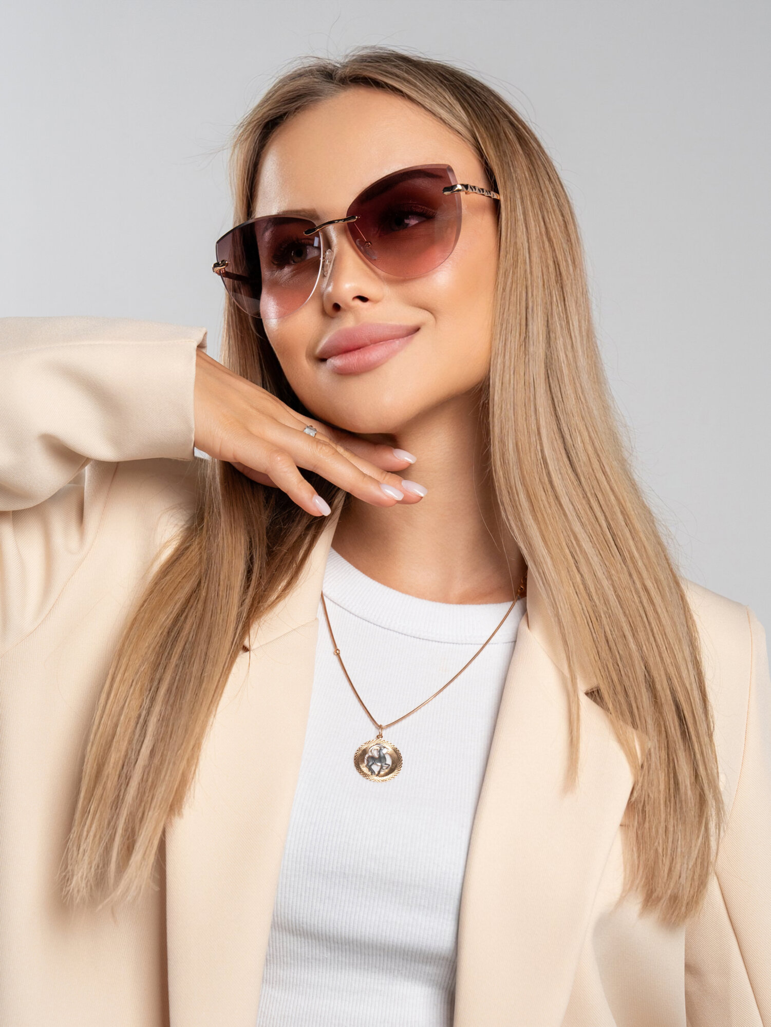 Очки солнцезащитные женские, светло-розовый, кофе с молоком