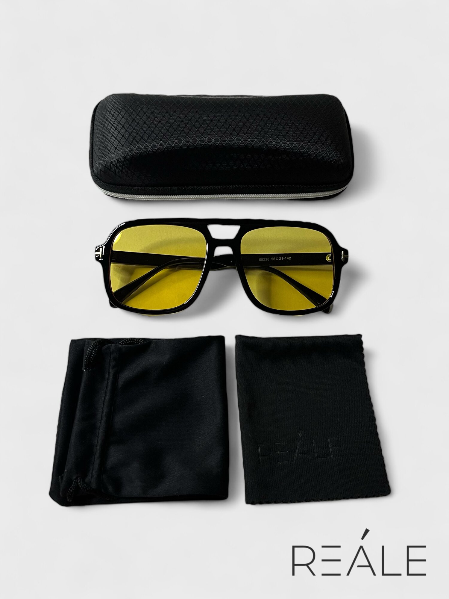 Купить REALE / Солнцезащитные очки мужские, женские / Защита от ультрафиолета UV400 / Коллекция 2024, черные, желтые