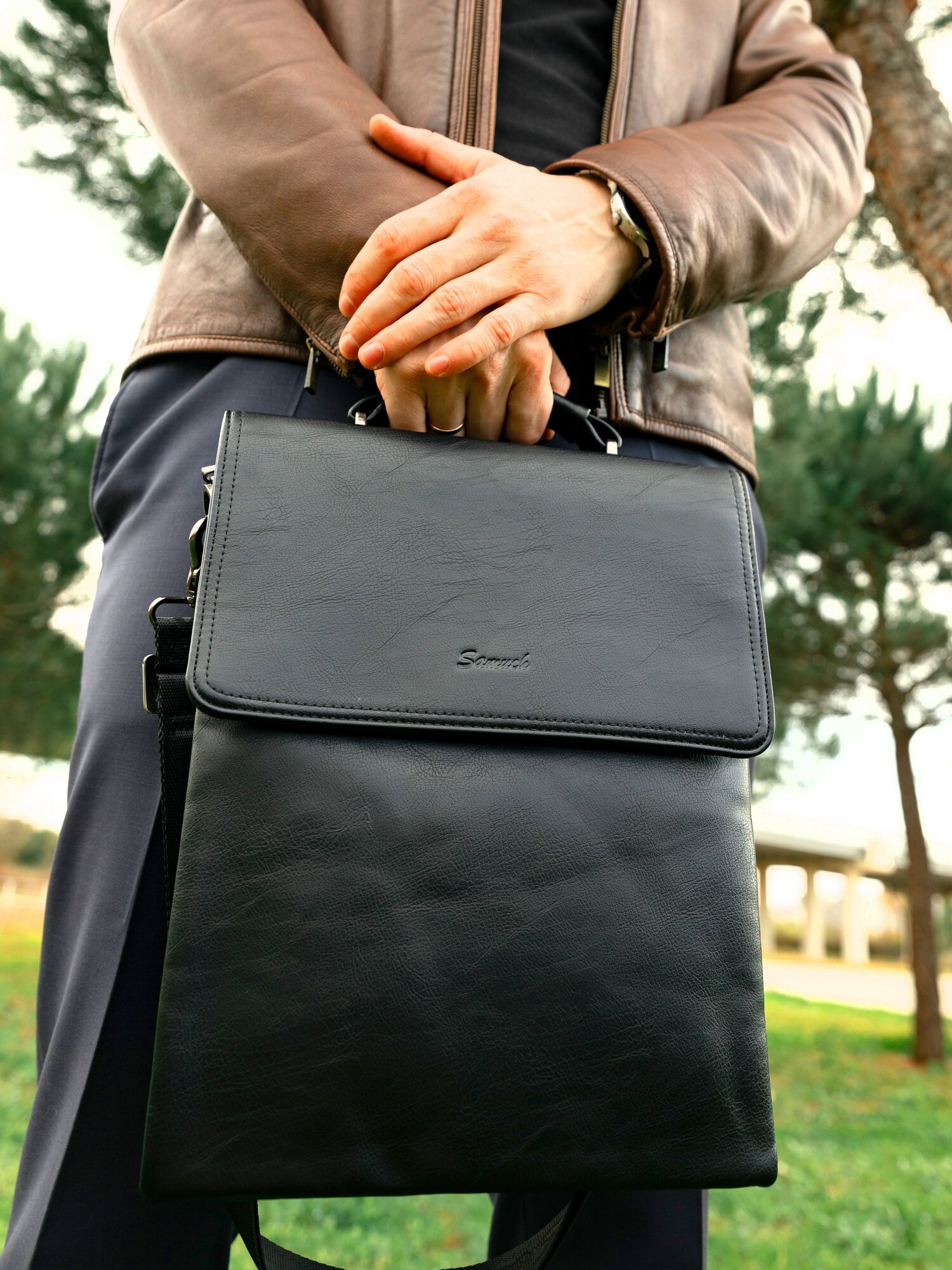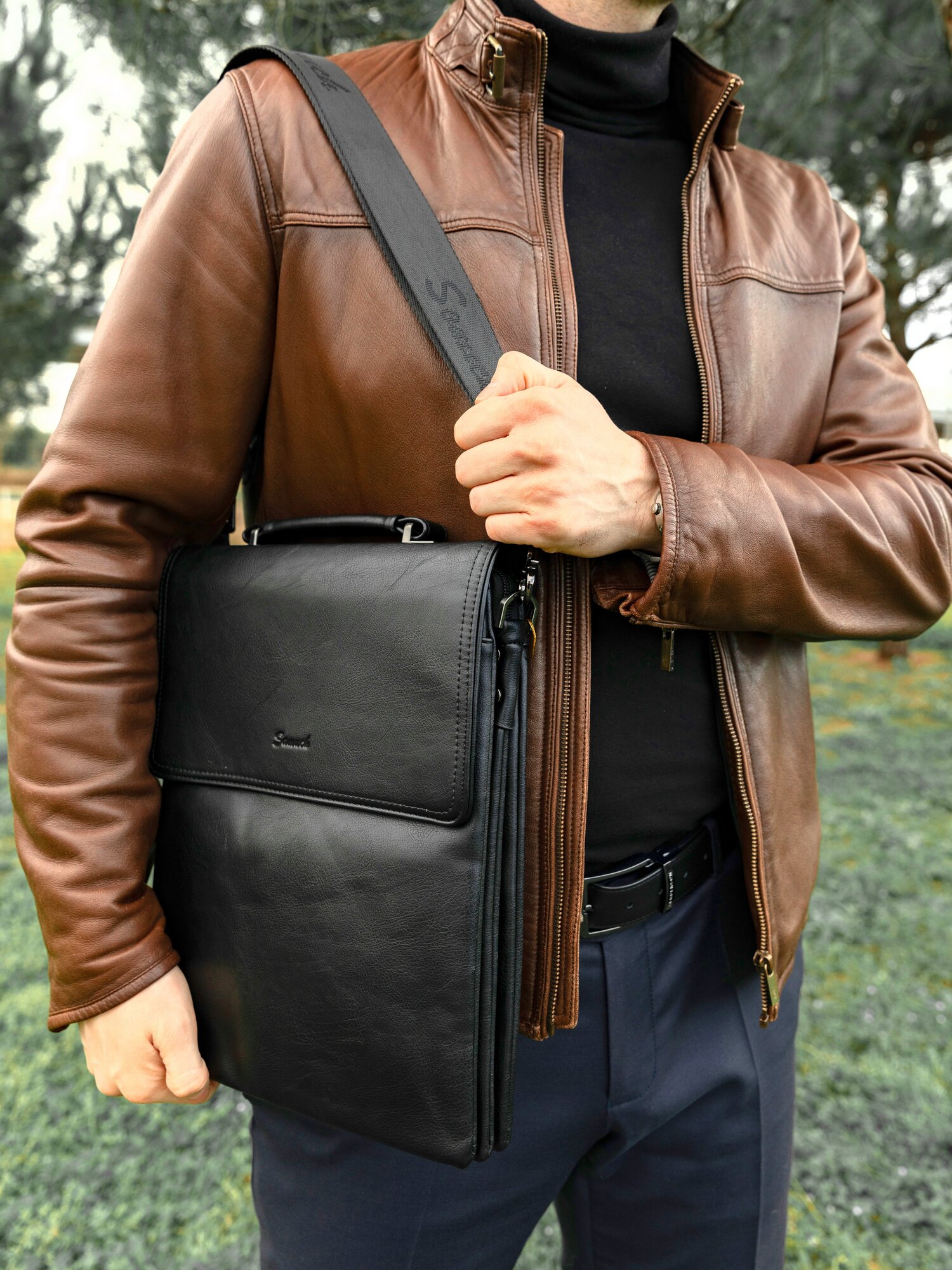 Портфель SOMUCH натуральная кожа черный 33*26*5 интересное: