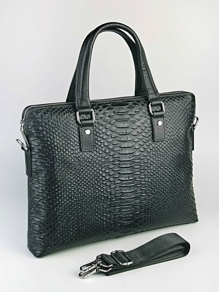 Портфель мужской, натуральная кожа, фактура под рептилию, на молнии, с плечевым ремнем, вмещает А4, черный интересное: