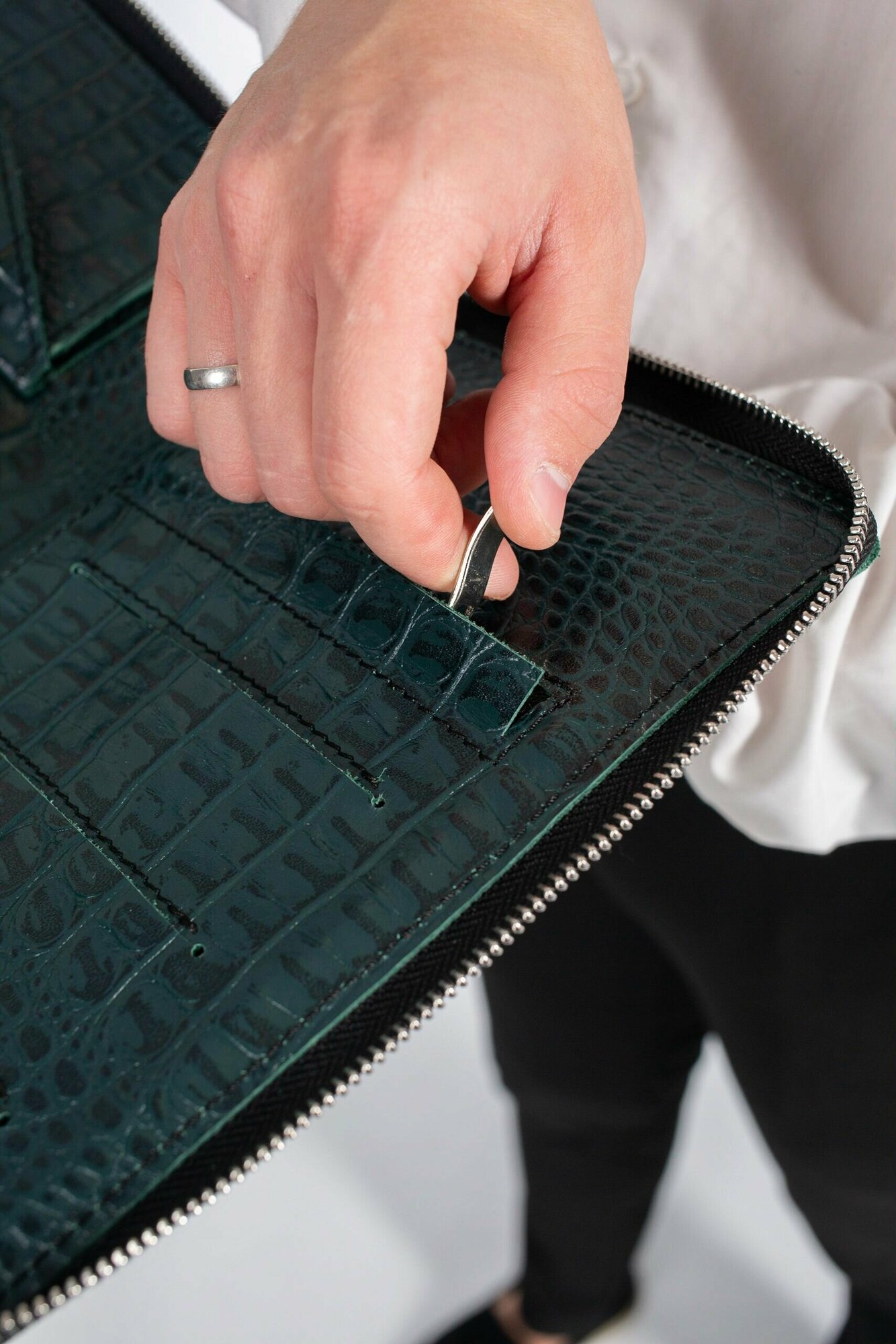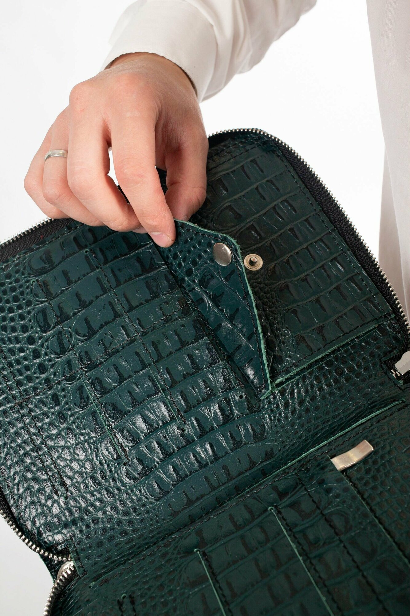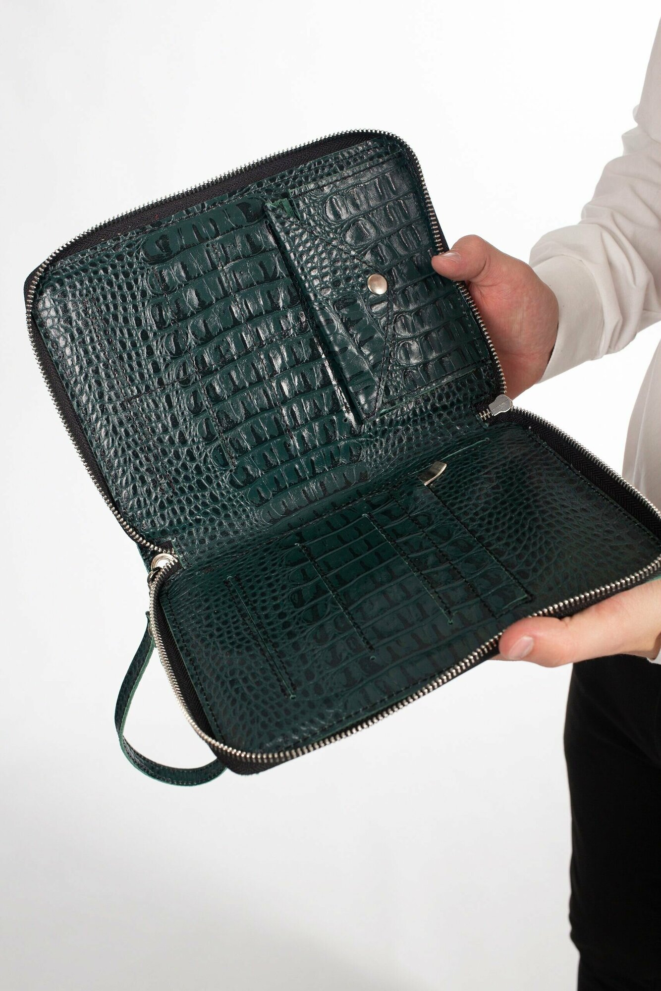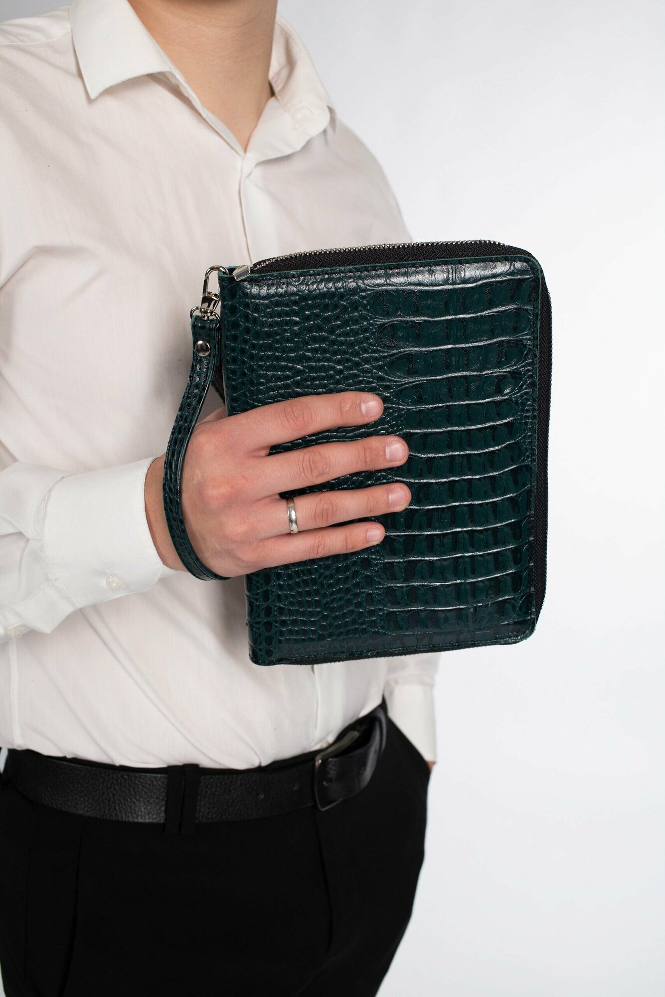 Папка-сумка из натуральной кожи А5 на молнии цвет зеленый интересное: