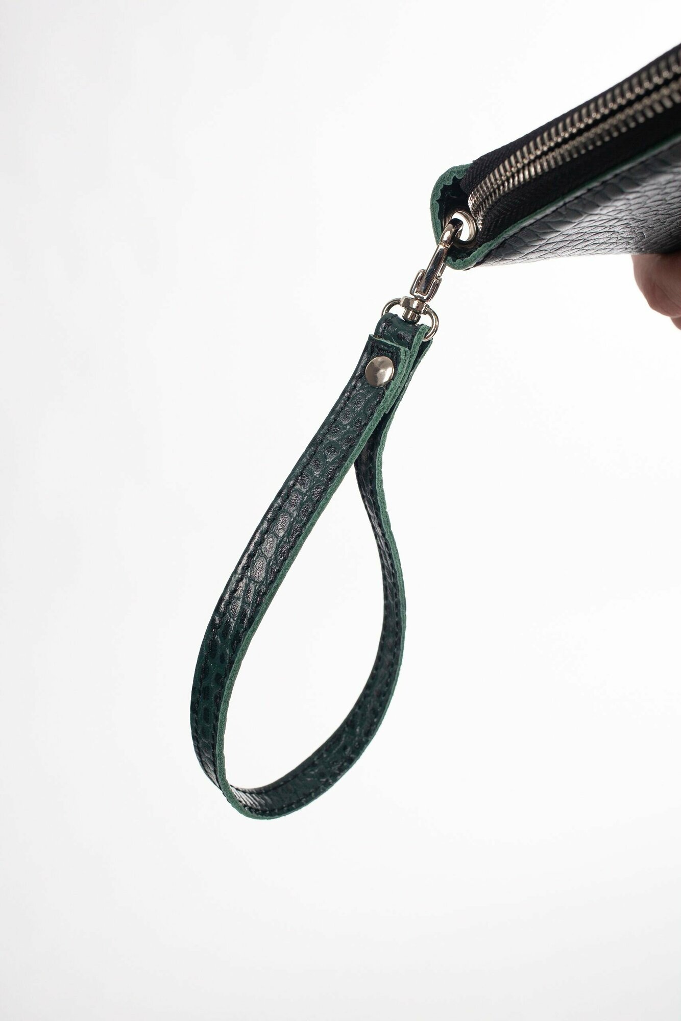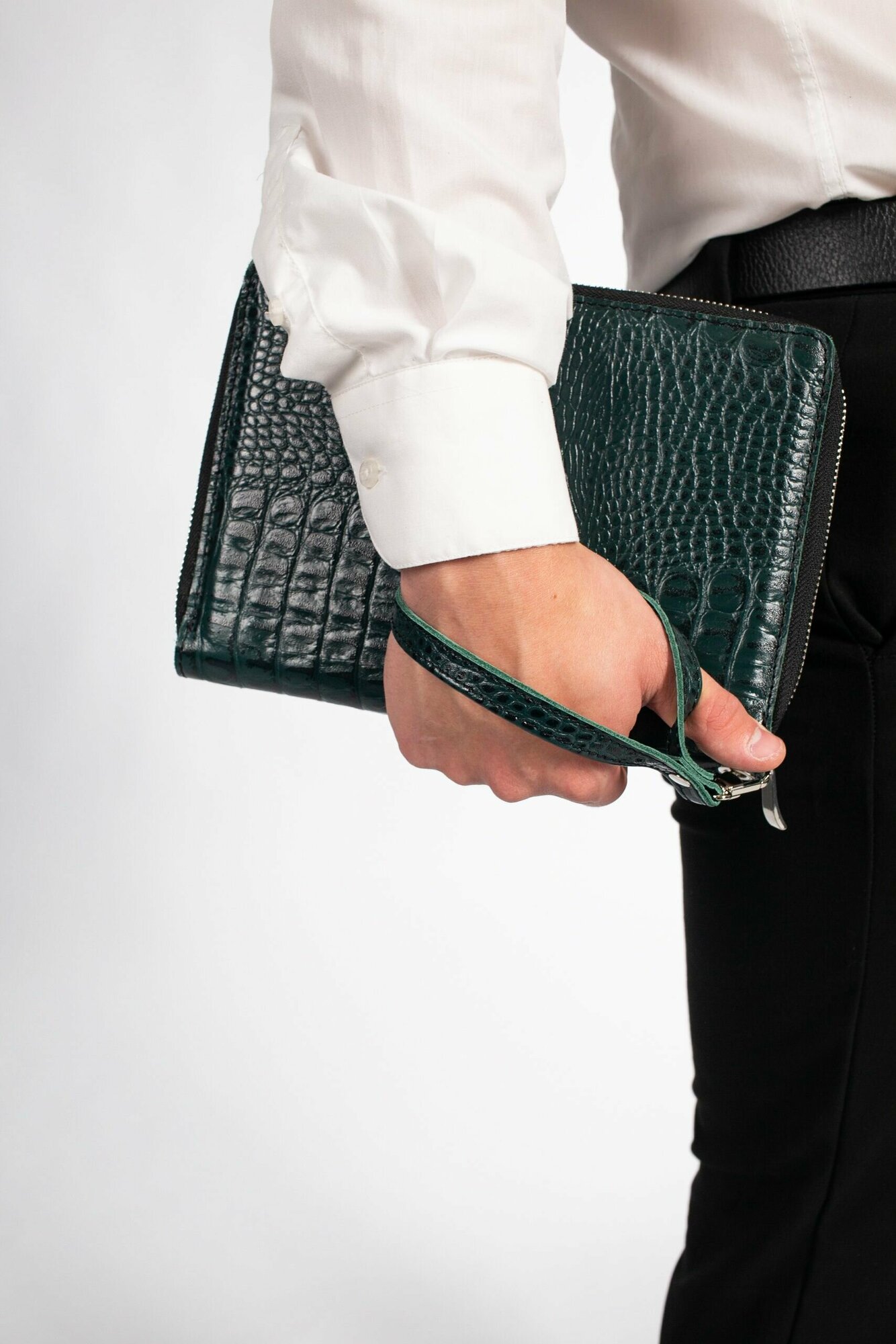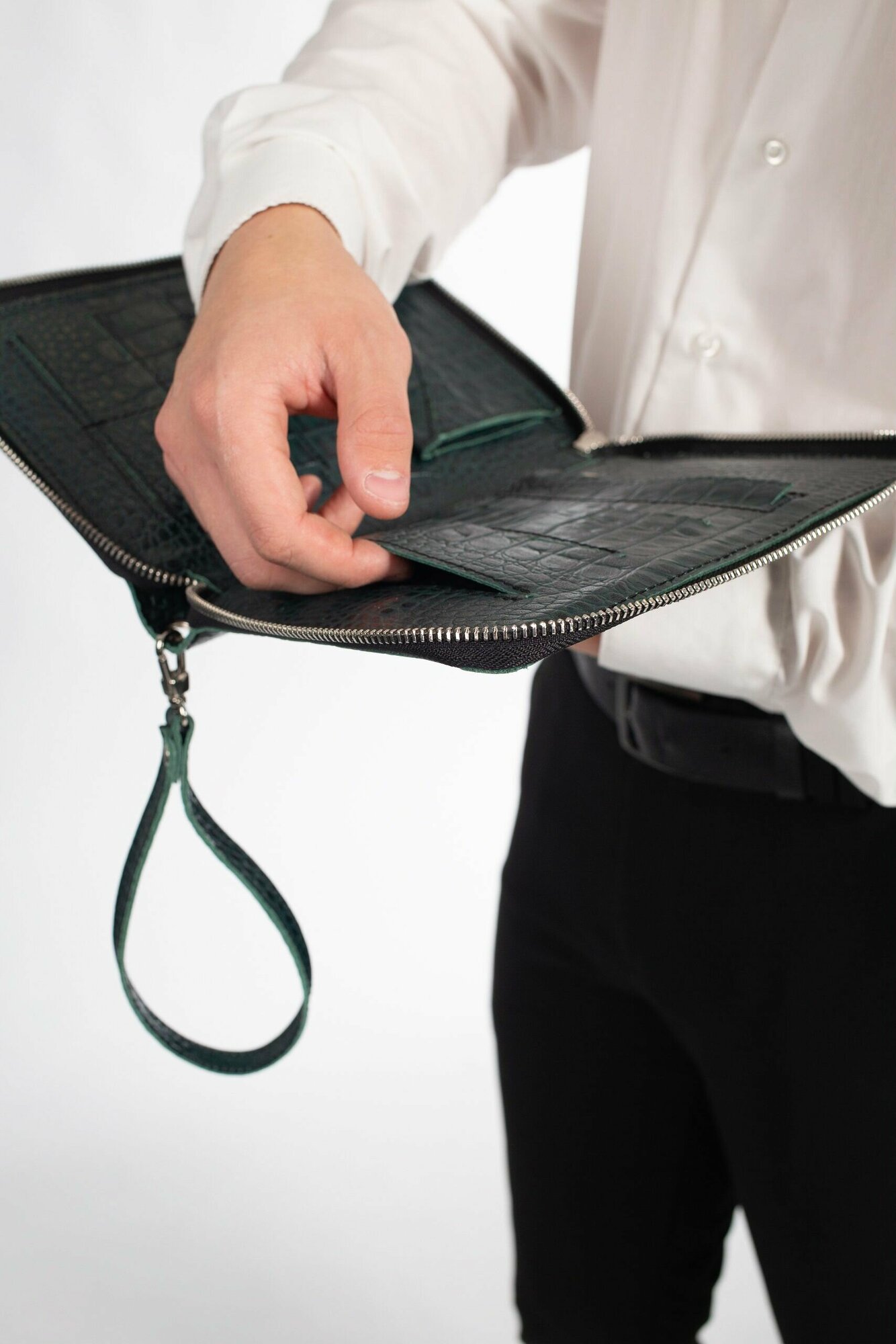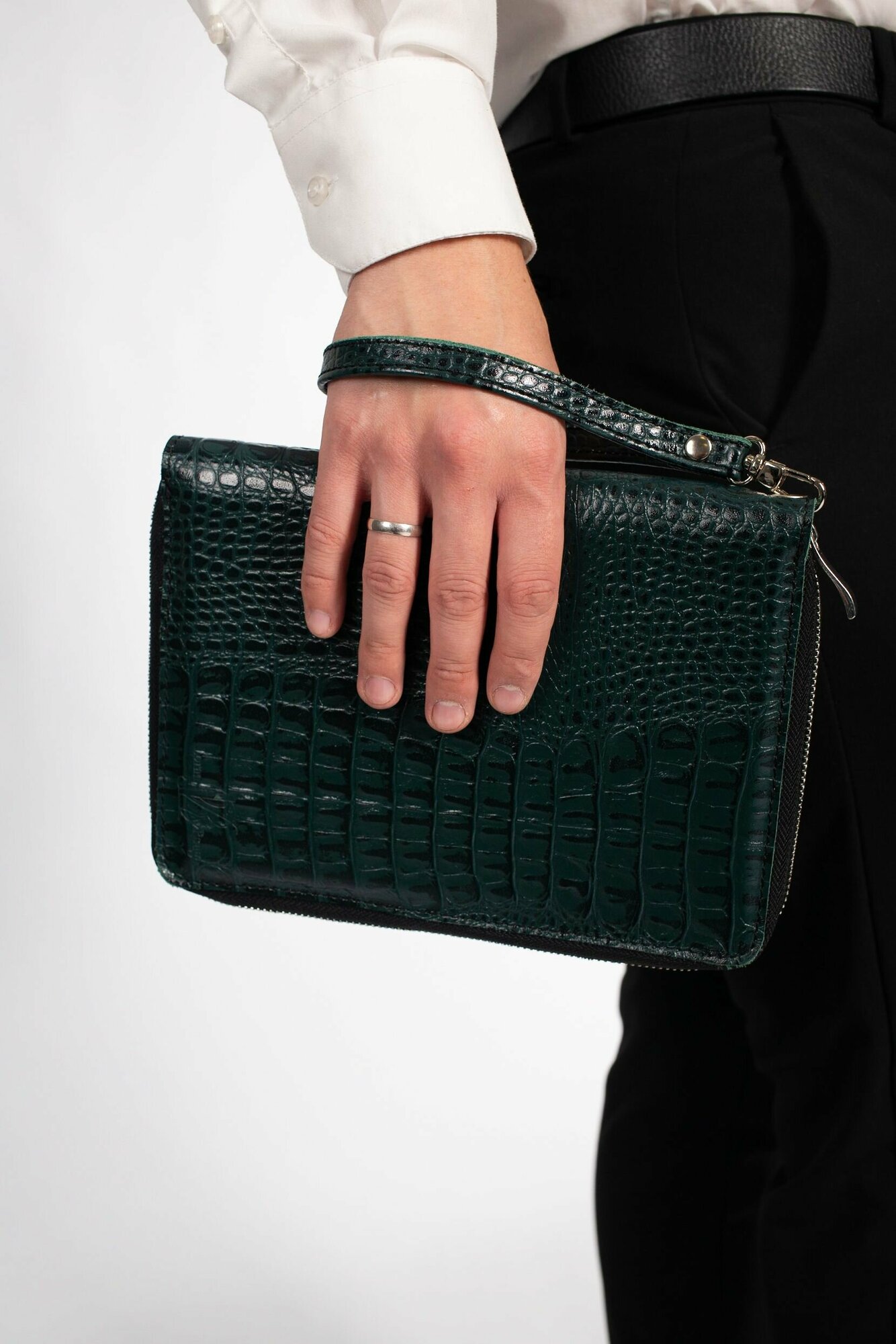 Папка-сумка из натуральной кожи А5 на молнии цвет зеленый интересное: