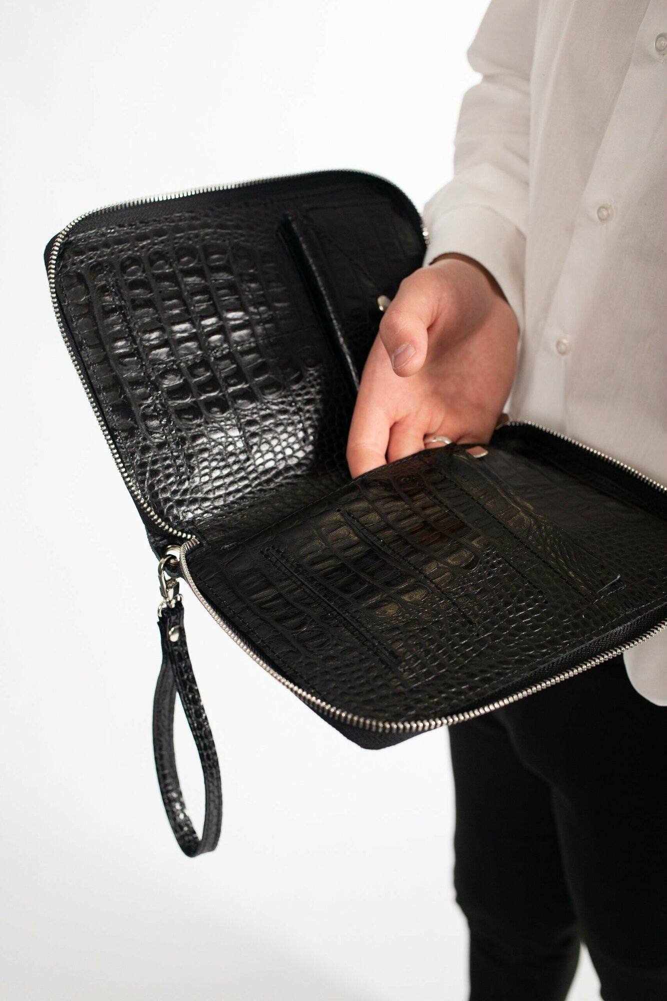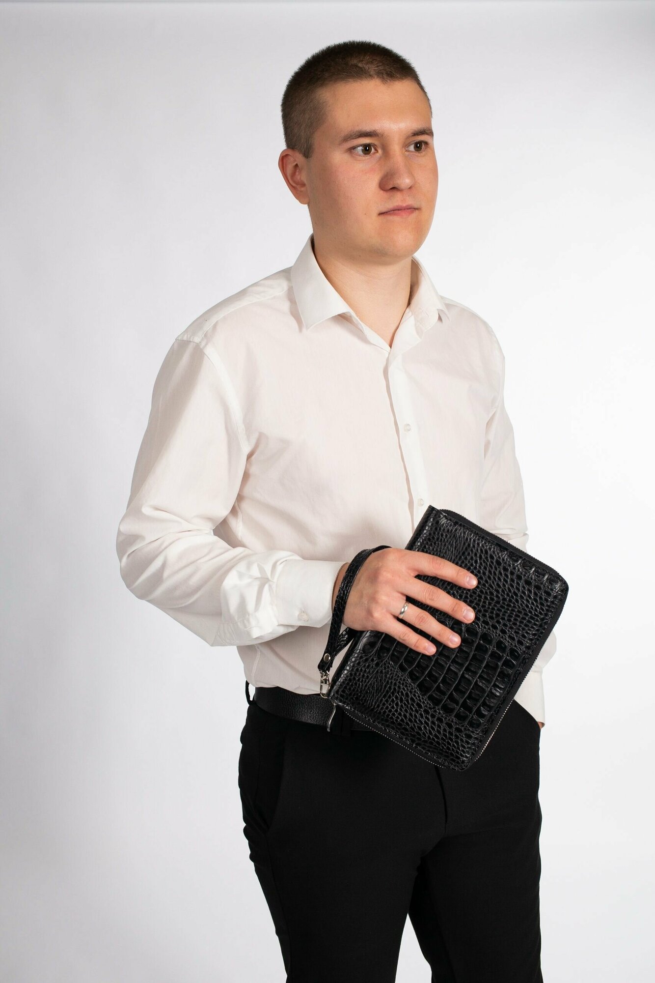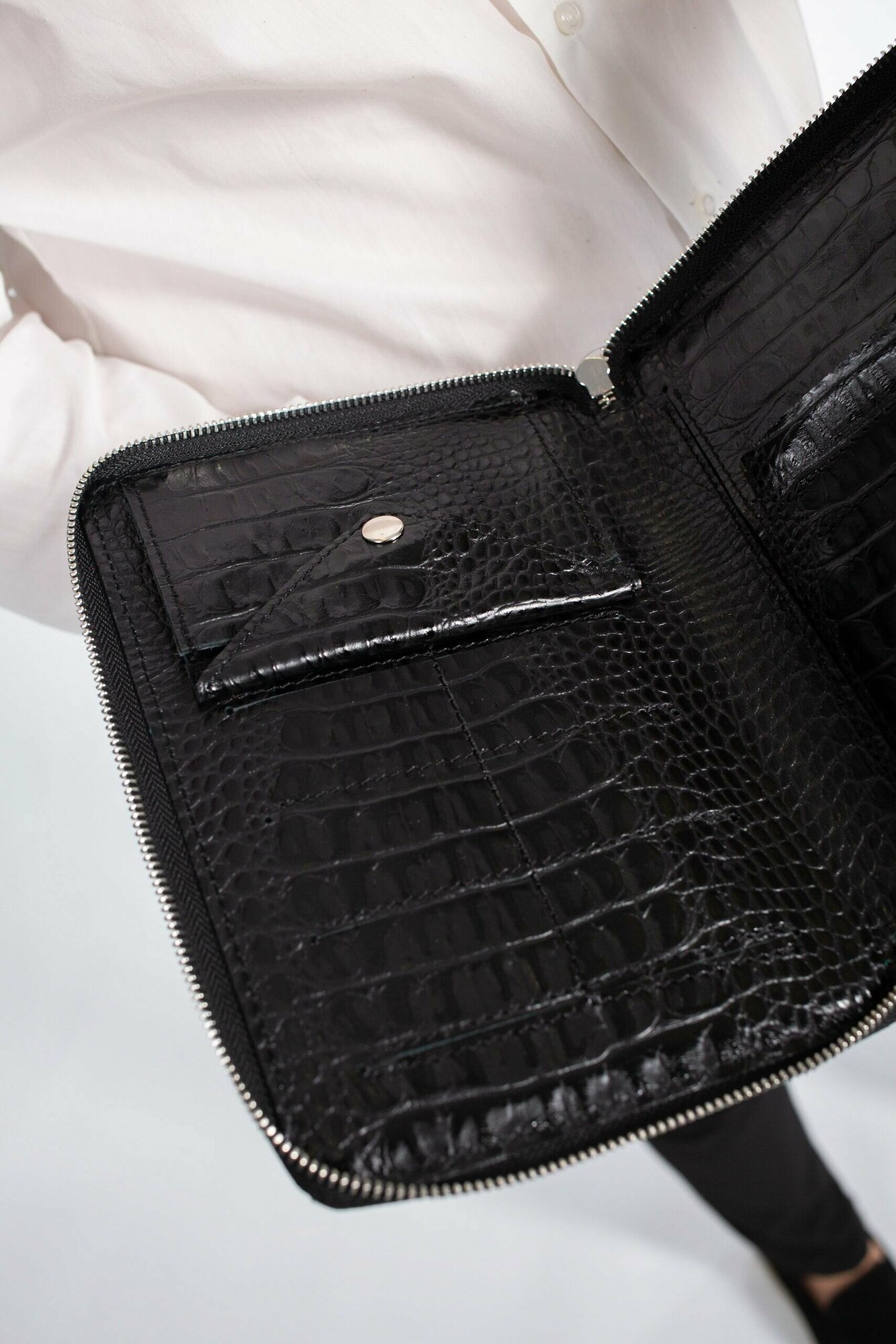 Купить Папка-сумка из натуральной кожи А5 на молнии цвет черный
