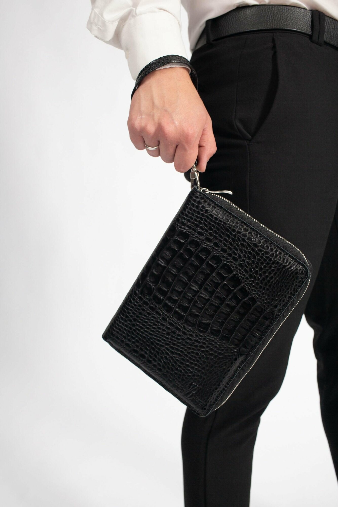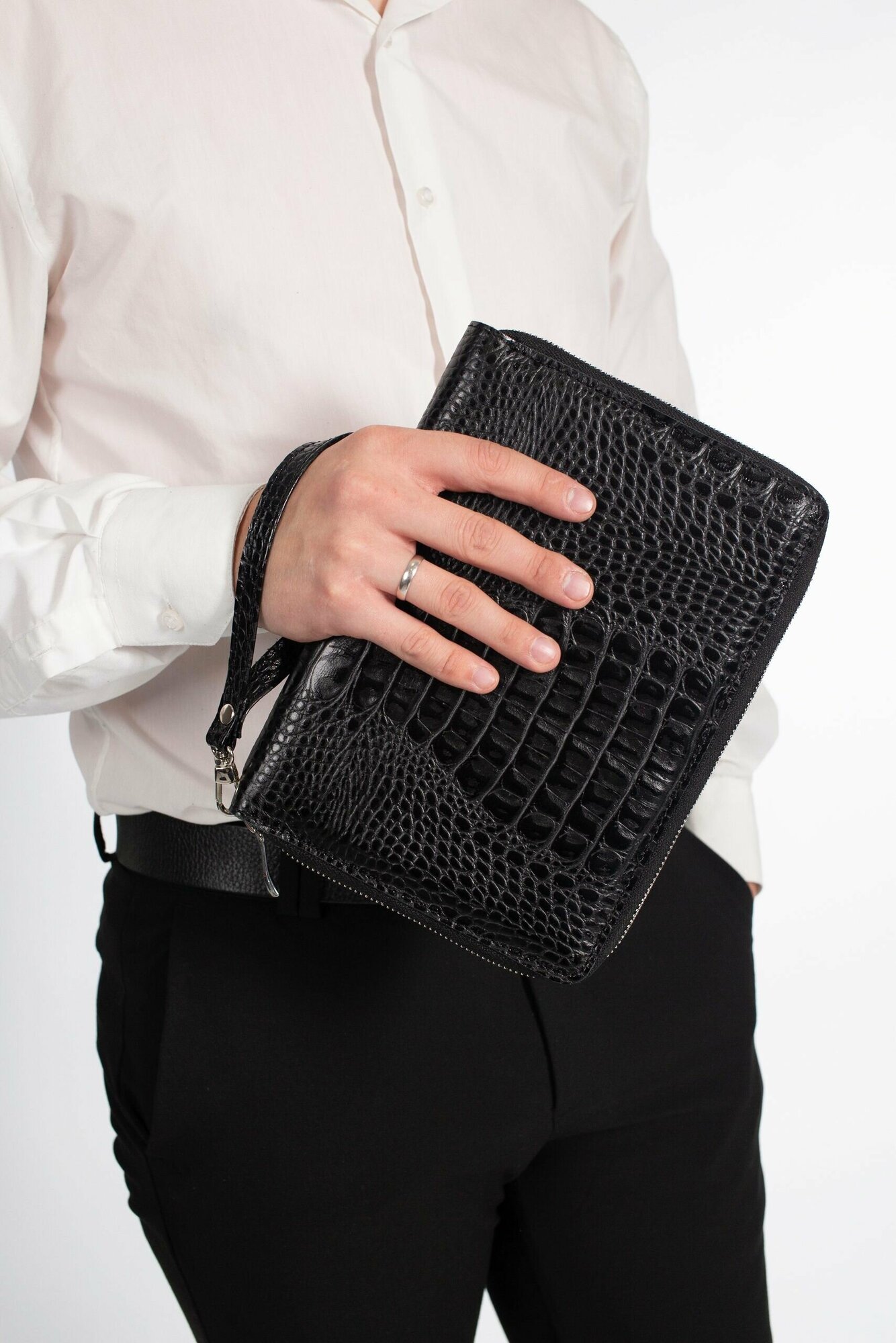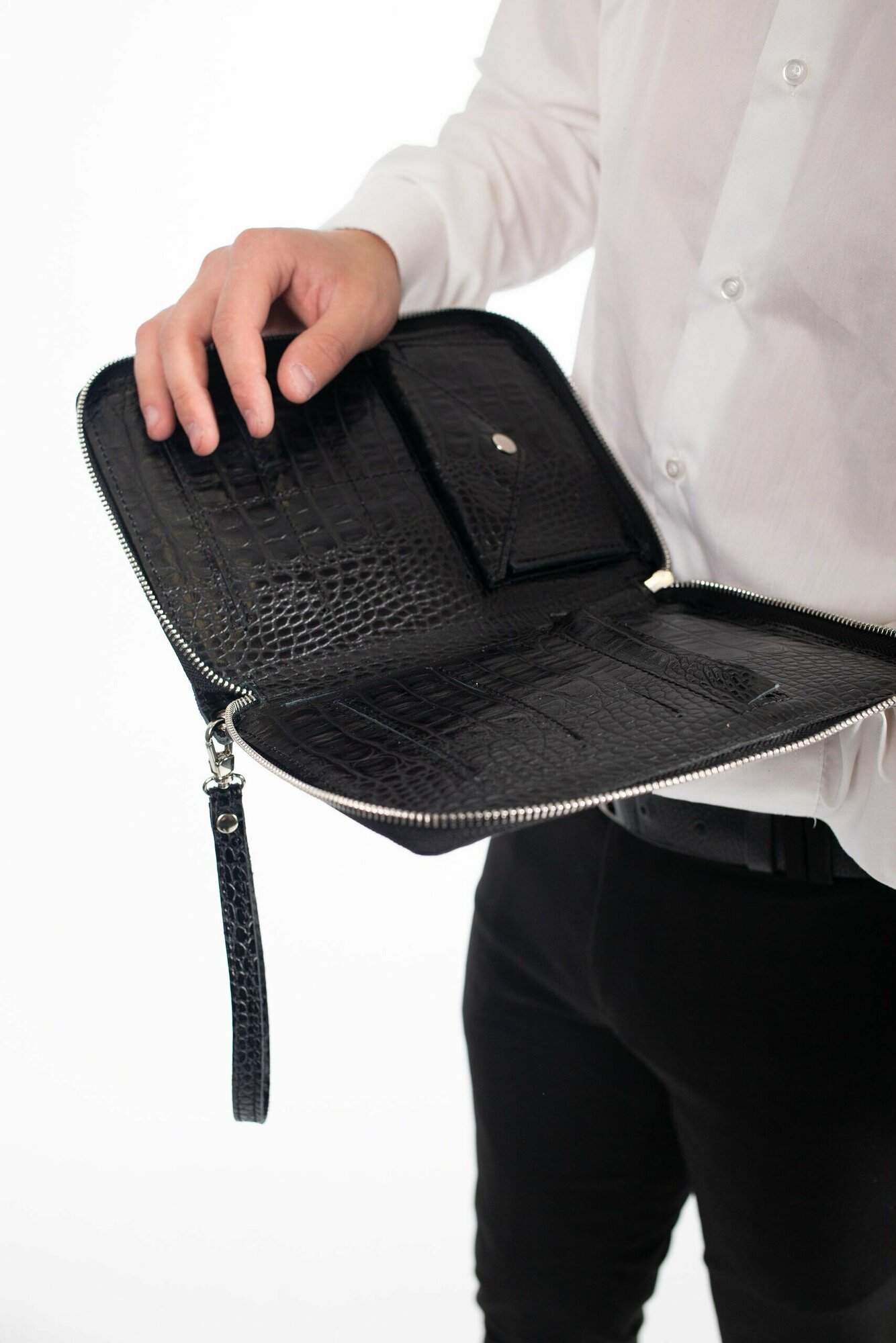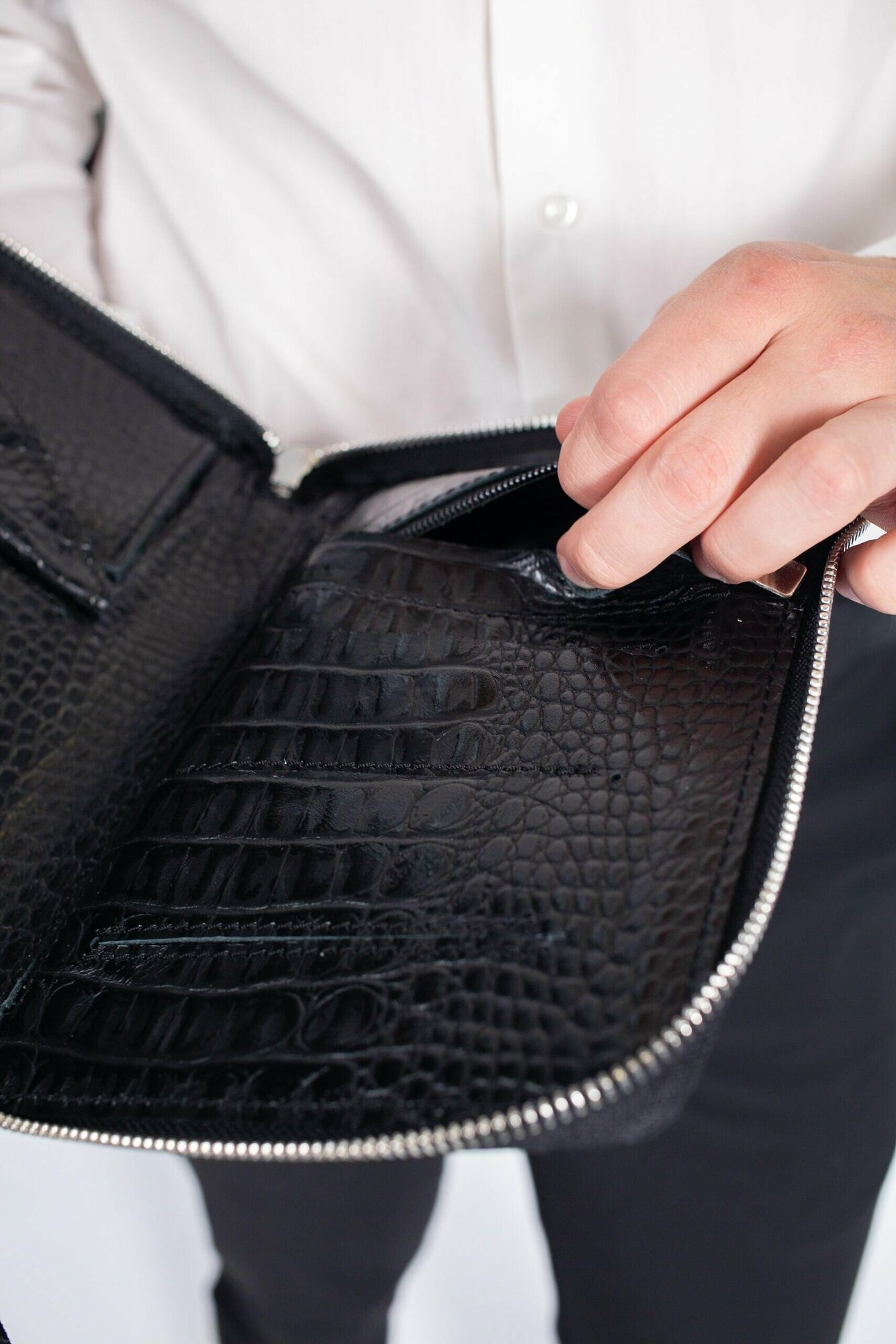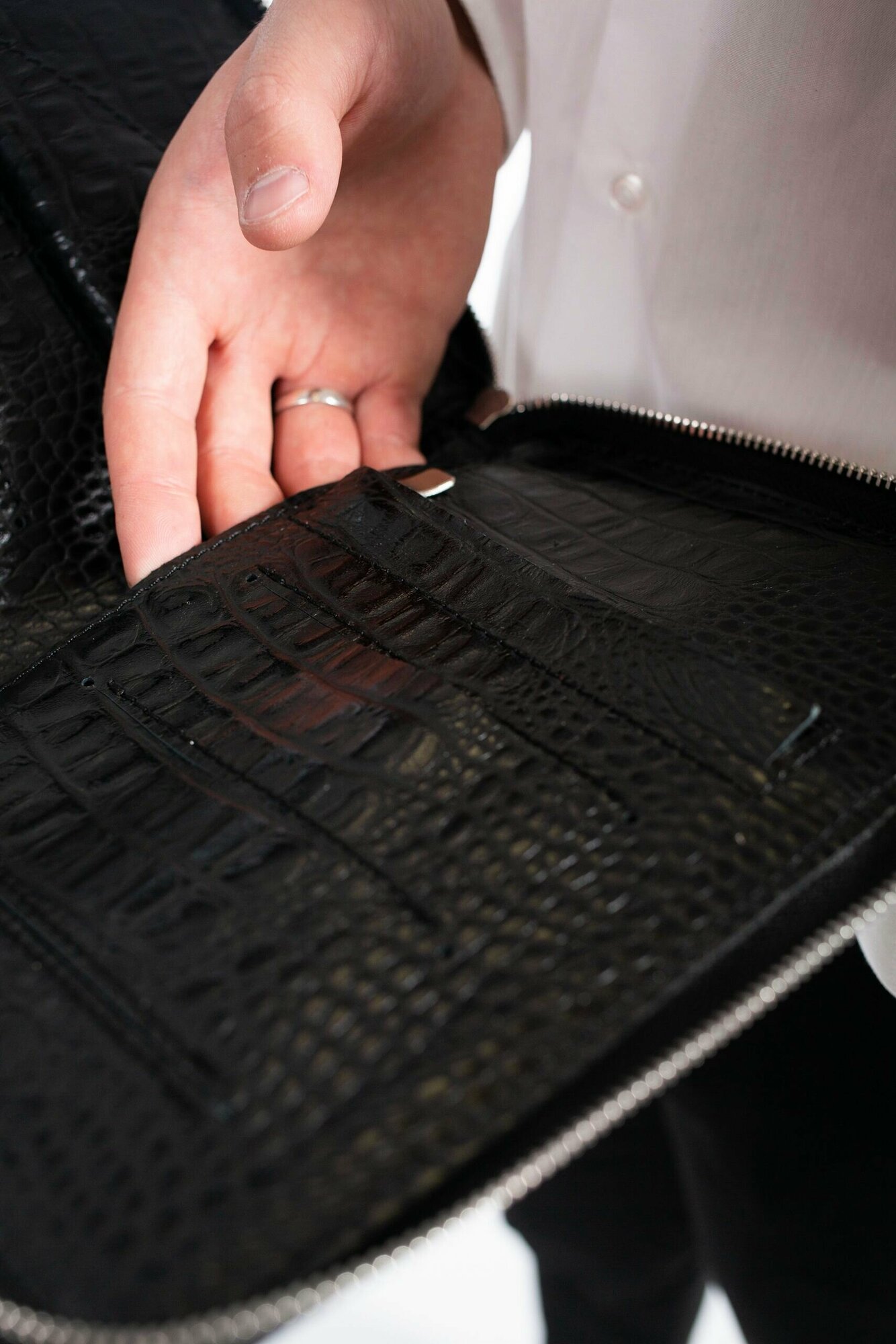 Папка-сумка из натуральной кожи А5 на молнии цвет черный интересное: