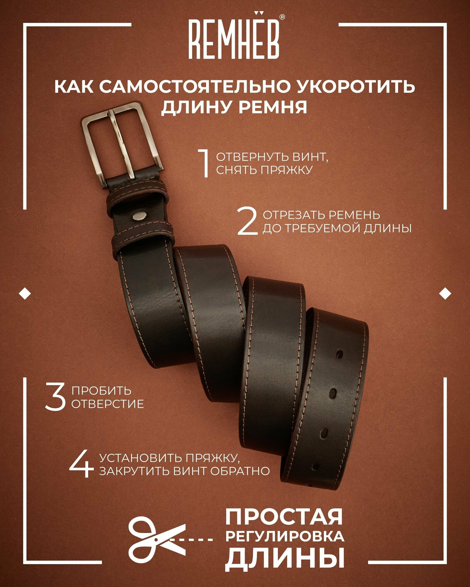 Ремень мужской кожаный для брюк и джинс из натуральной кожи, темно-коричневый, 125 см интересное: