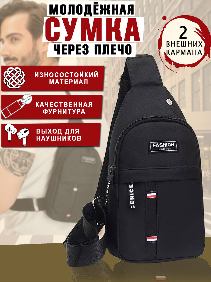 сумка мужская через плечо; сумка через плечо; подарок; подарок мужчине; черная 2 A-Store интересное: