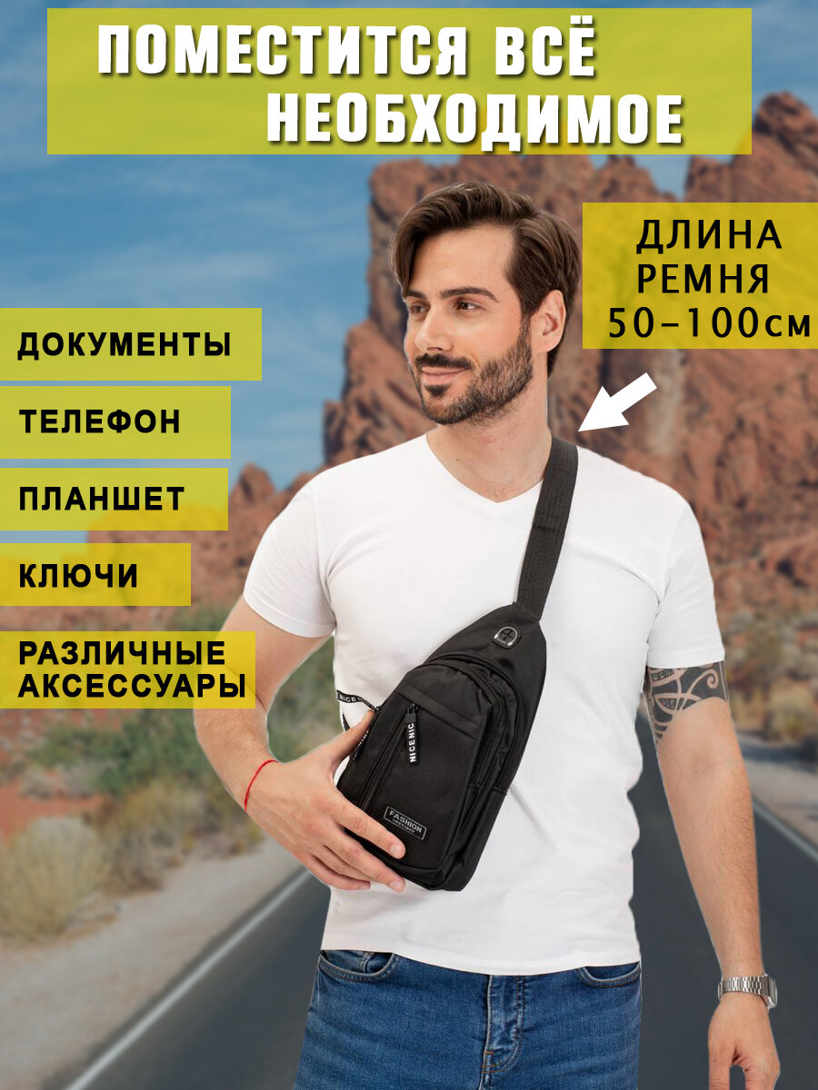 Сумка мужская через плечо черная с тремя отделениями A-Store интересное: