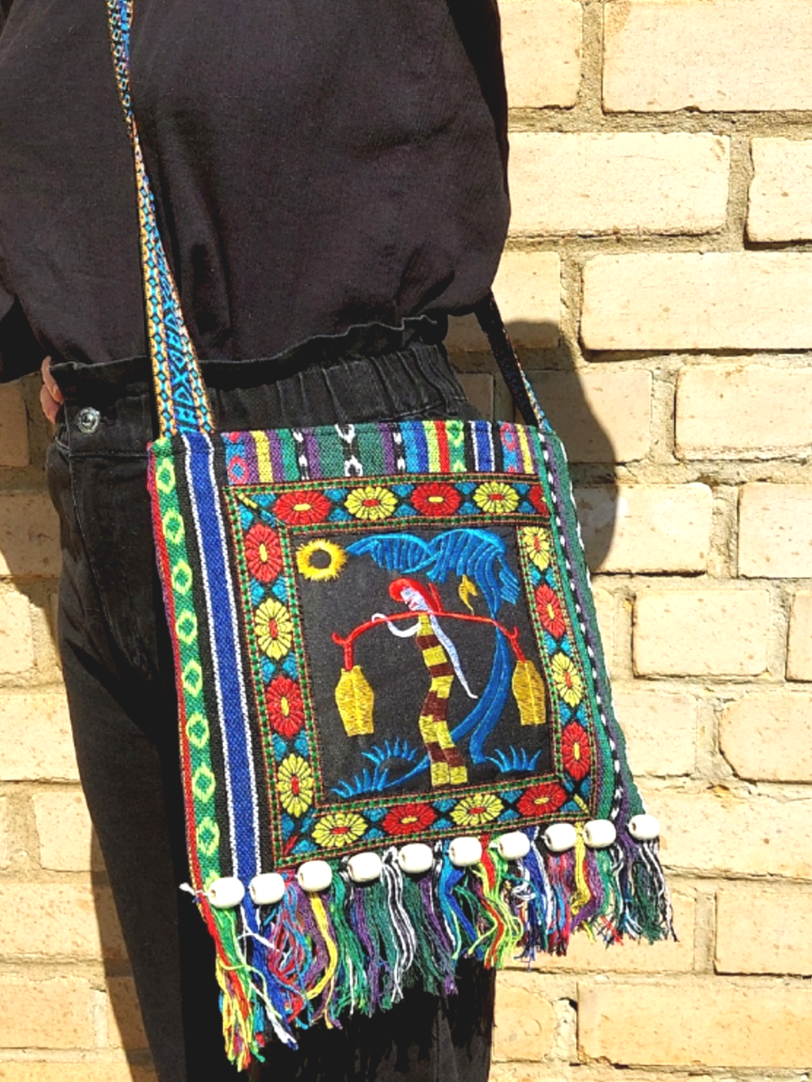 Сумка шопер тканевая с вышивкой в этно стиле коромысло интересное: