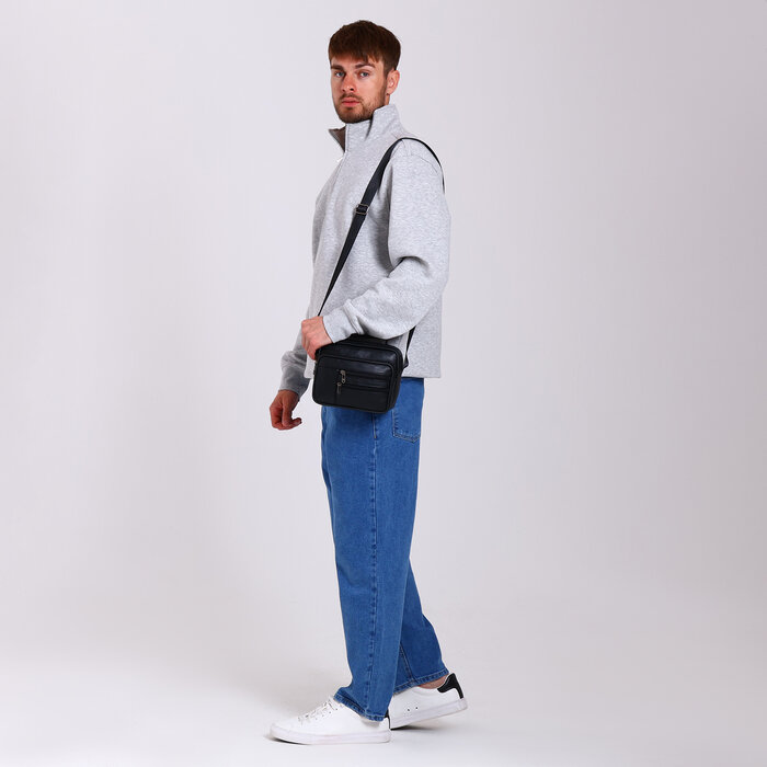 Купить Сумка мужская, 15*9*19, отд на молнии, 5 н/карманов, длин ремень, ручка, черный 9543220 .