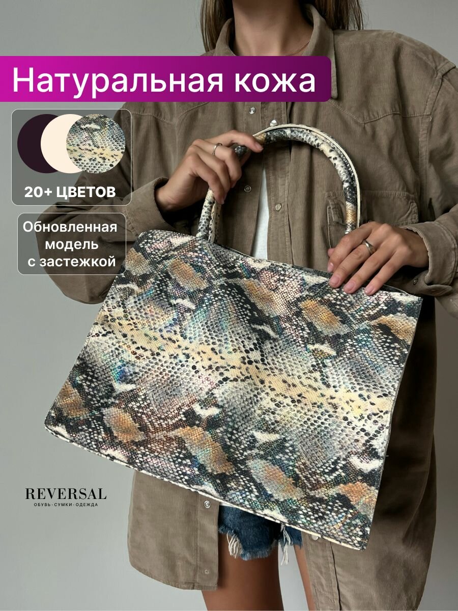 Шоппер натуральная кожа сумка большая кожаная на плечо , Reversal, 8859_Кобра-золотой интересное: