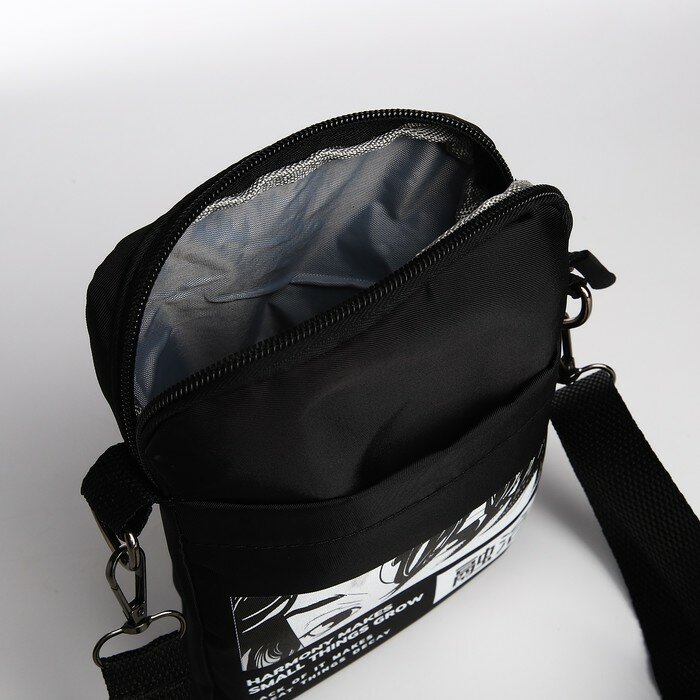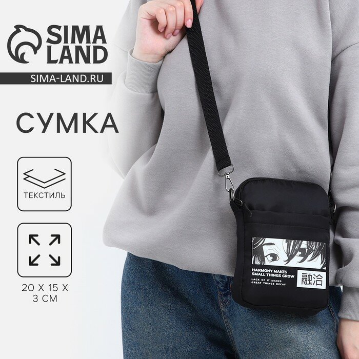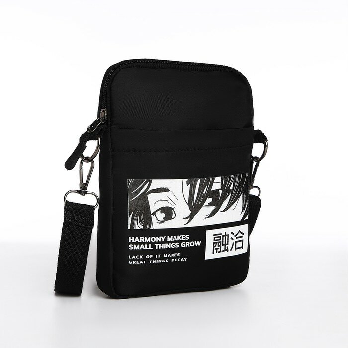 Сумка молодёжная на длинном ремне Anime, 20 х 15 х 3 см, отдел на молнии, цвет чёрный NAZAMOK 961483 .