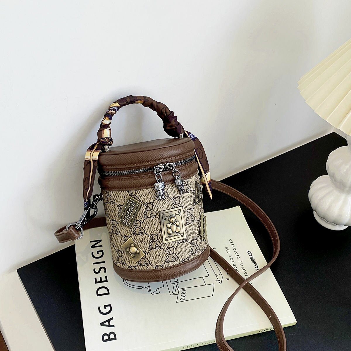 Женская сумка-бочонок Beibaobao, коричневая, с принтом, с плечевым ремнем y2k