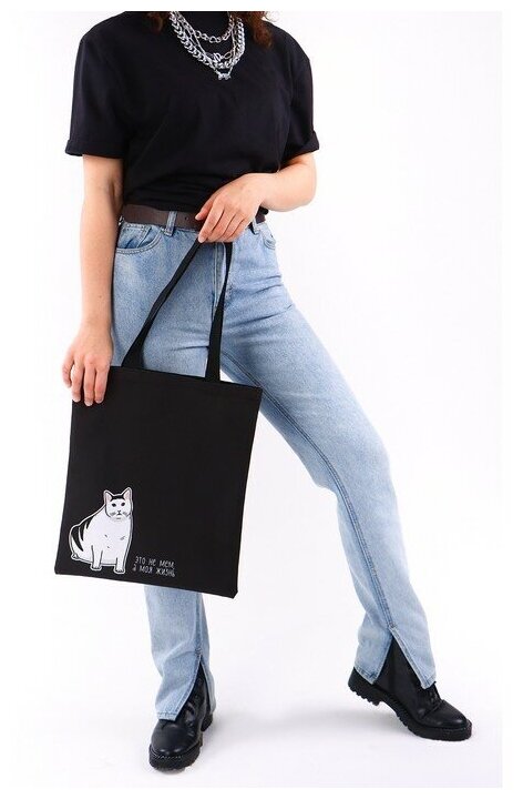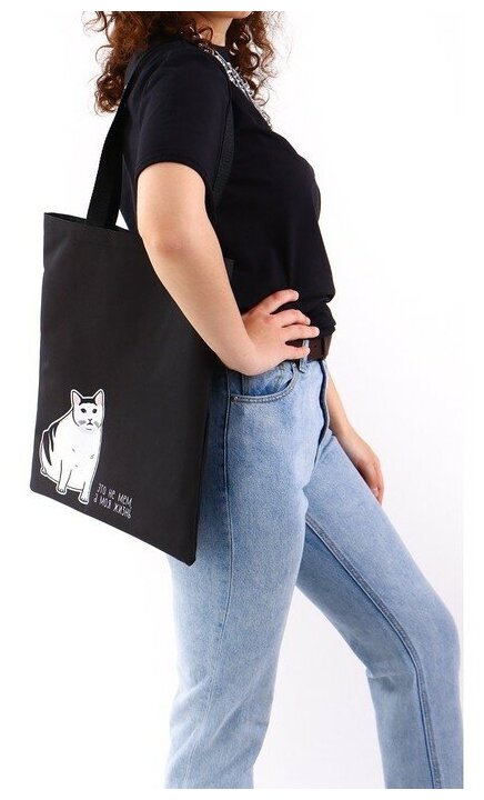 Сумка шоппер "Кот" 35*0,5*40, отд без молнии, без подклада, черная 7862564 интересное: