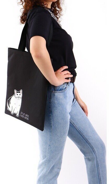 Купить Сумка шоппер "Кот" 35*0,5*40, отд без молнии, без подклада, черная 7862564