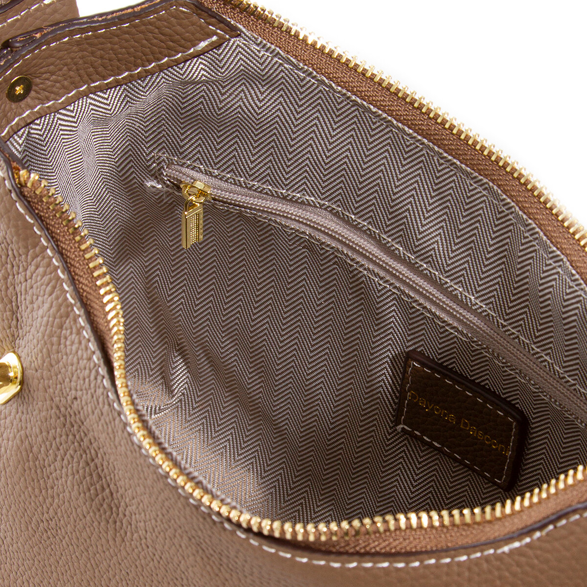 Сумка женская кожаная через плечо (темно-бежевая) Dayona Dasconi с плечевым ремнем кросс-боди интересное: