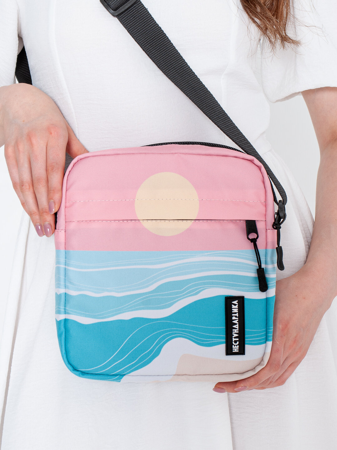 Сумка-мессенджер студенческая через плечо с принтом "Персиковый закат"