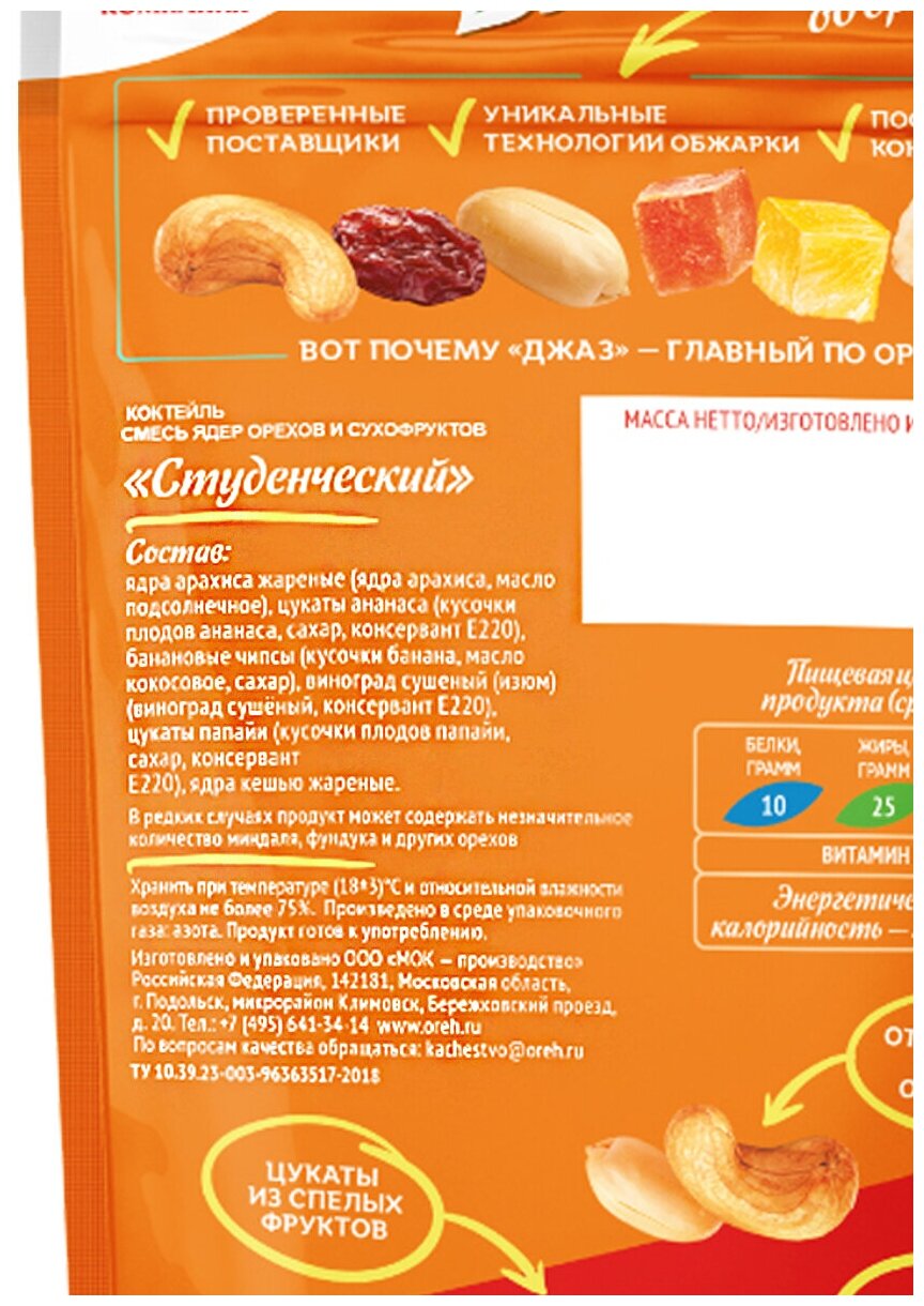 Ниже Вы можете прочитать отзывы на Коктейль "Студенческий": смесь орехов и сухофруктов /орехово-фруктовая смесь/коктейль орехов сухофруктов "Джаз" 150 г., ознакомится с подробными характеристиками, посмотреть интересные обзоры и фотографии на Коктейль "Студенческий": смесь орехов и сухофруктов /орехово-фруктовая смесь/коктейль орехов сухофруктов "Джаз" 150 г..