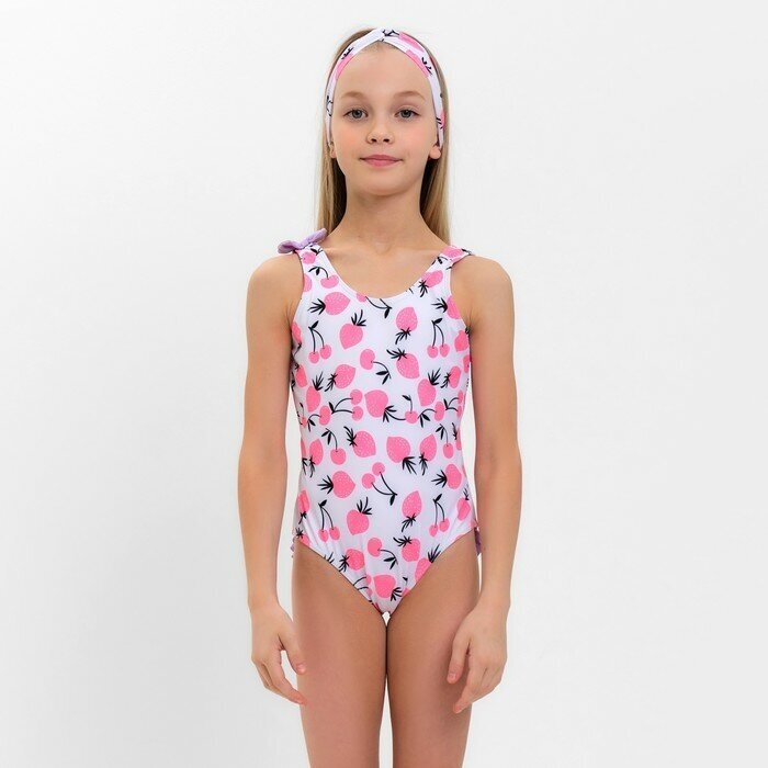Купальник детский слитный MINAKU с повязкой, цвет розовый, рост 116-122