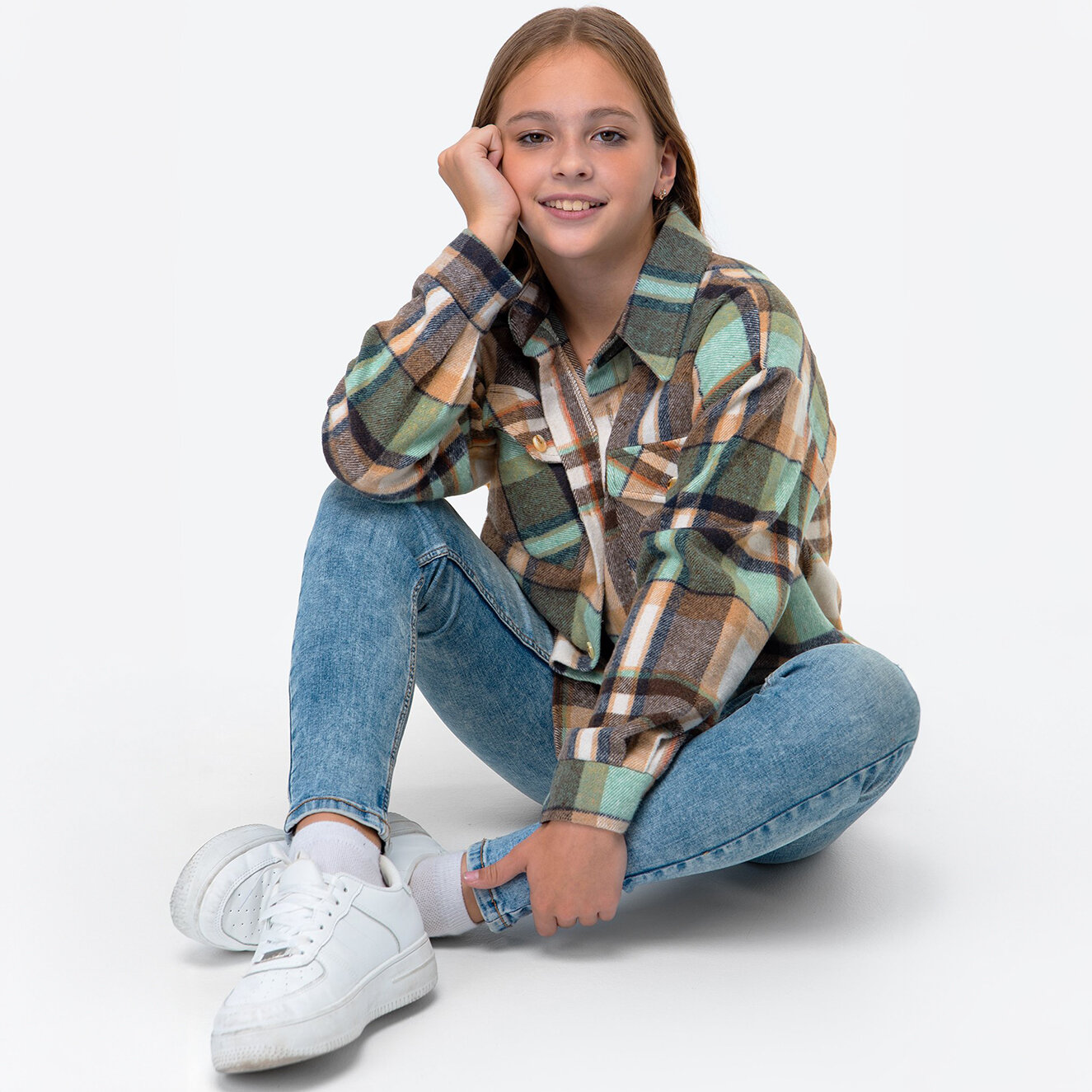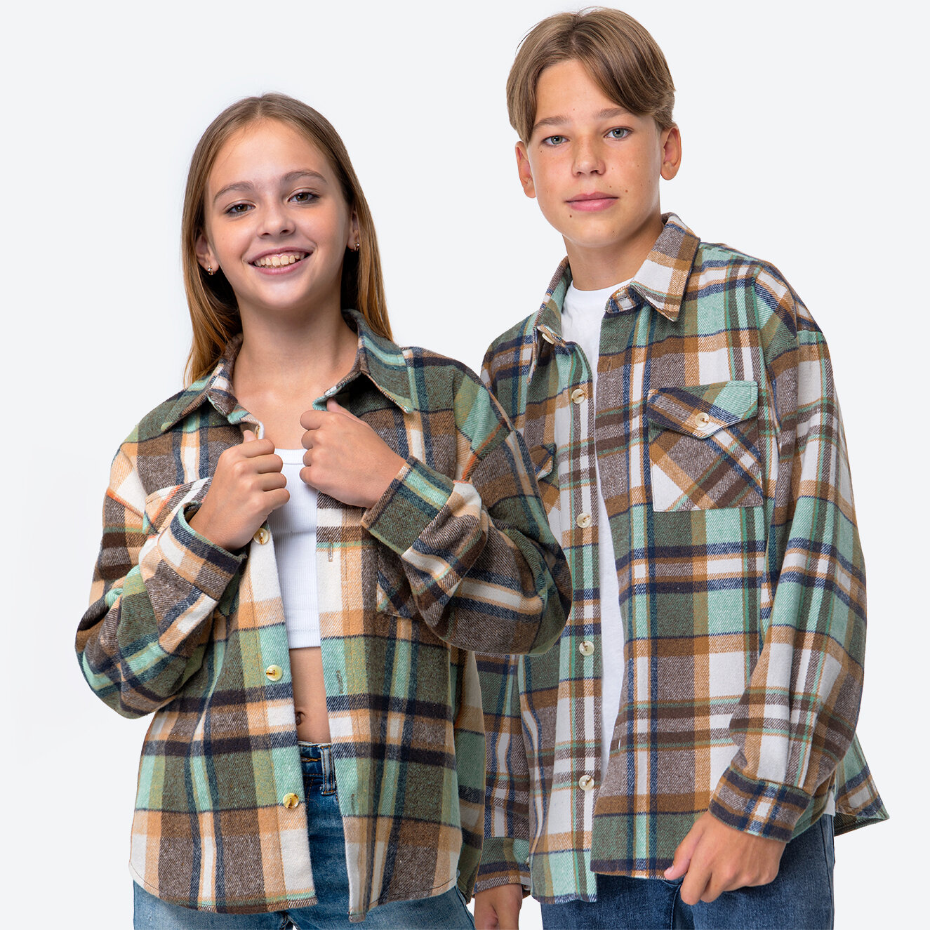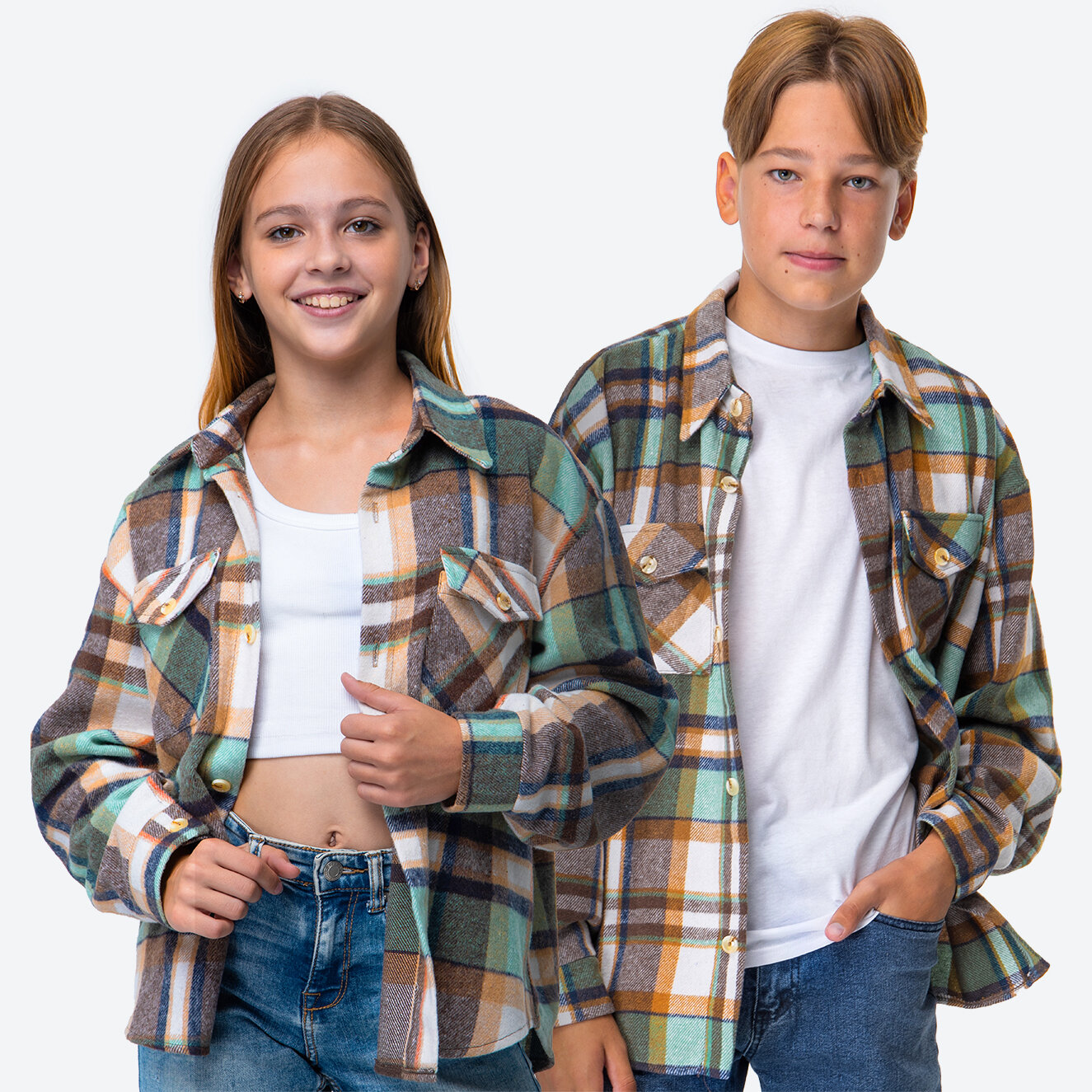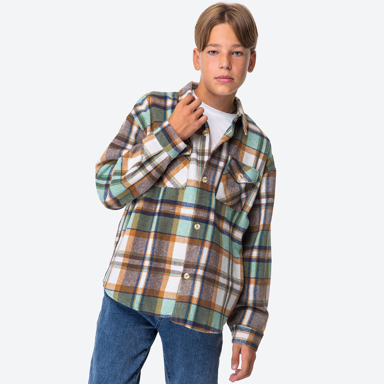 Детская теплая рубашка в клетку Happy Fox HFSL5533зеленая.клетка интересное: