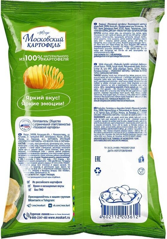 Картофель хрустящий "Московский картофель" со вкусом лука и сметаны 70г