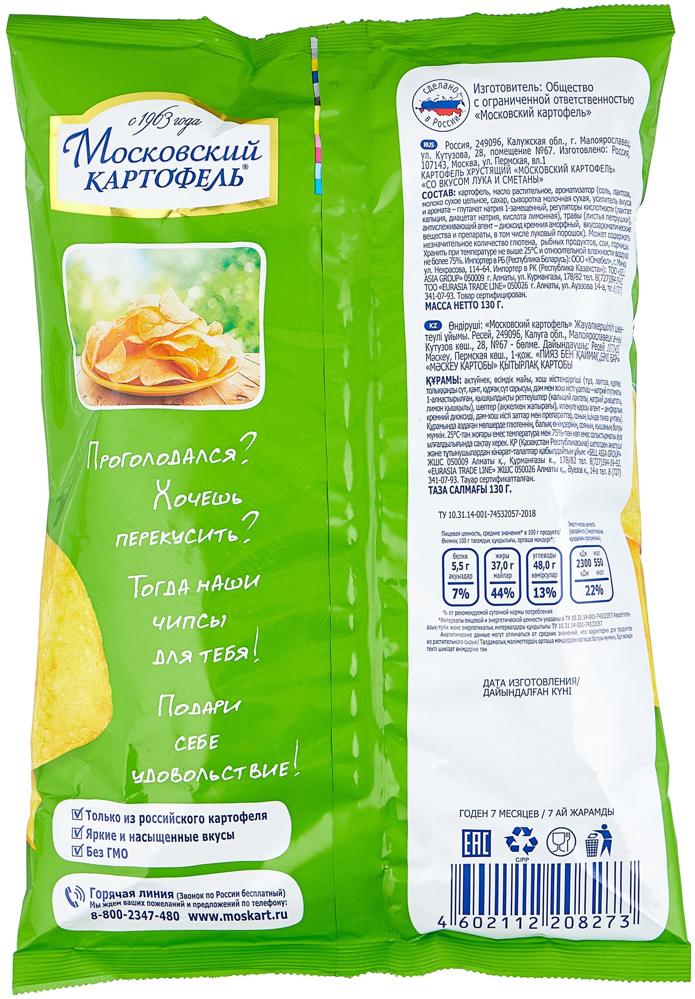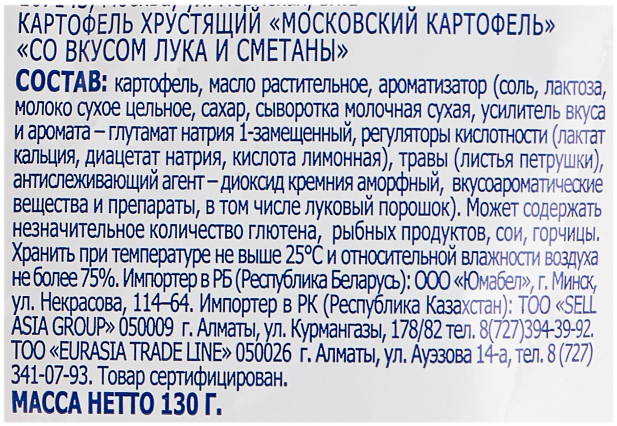 Картофель хрустящий "Московский картофель" со вкусом лука и сметаны 130г