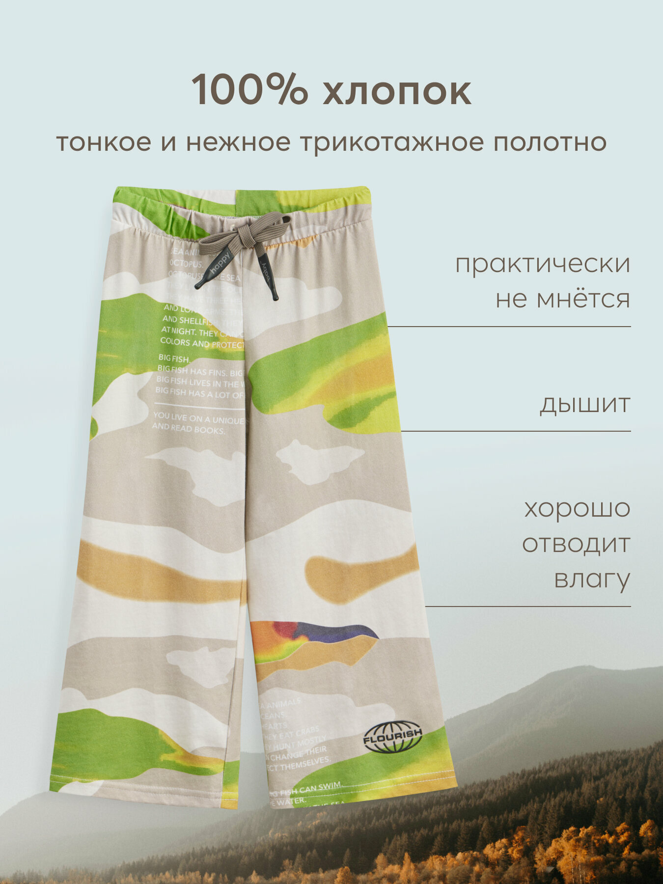Сохранить88216, Брюки детские Happy Baby, для мальчиков и девочек, 100% хлопок, на шнурке, разноцветные, рост 128-134 интересное: