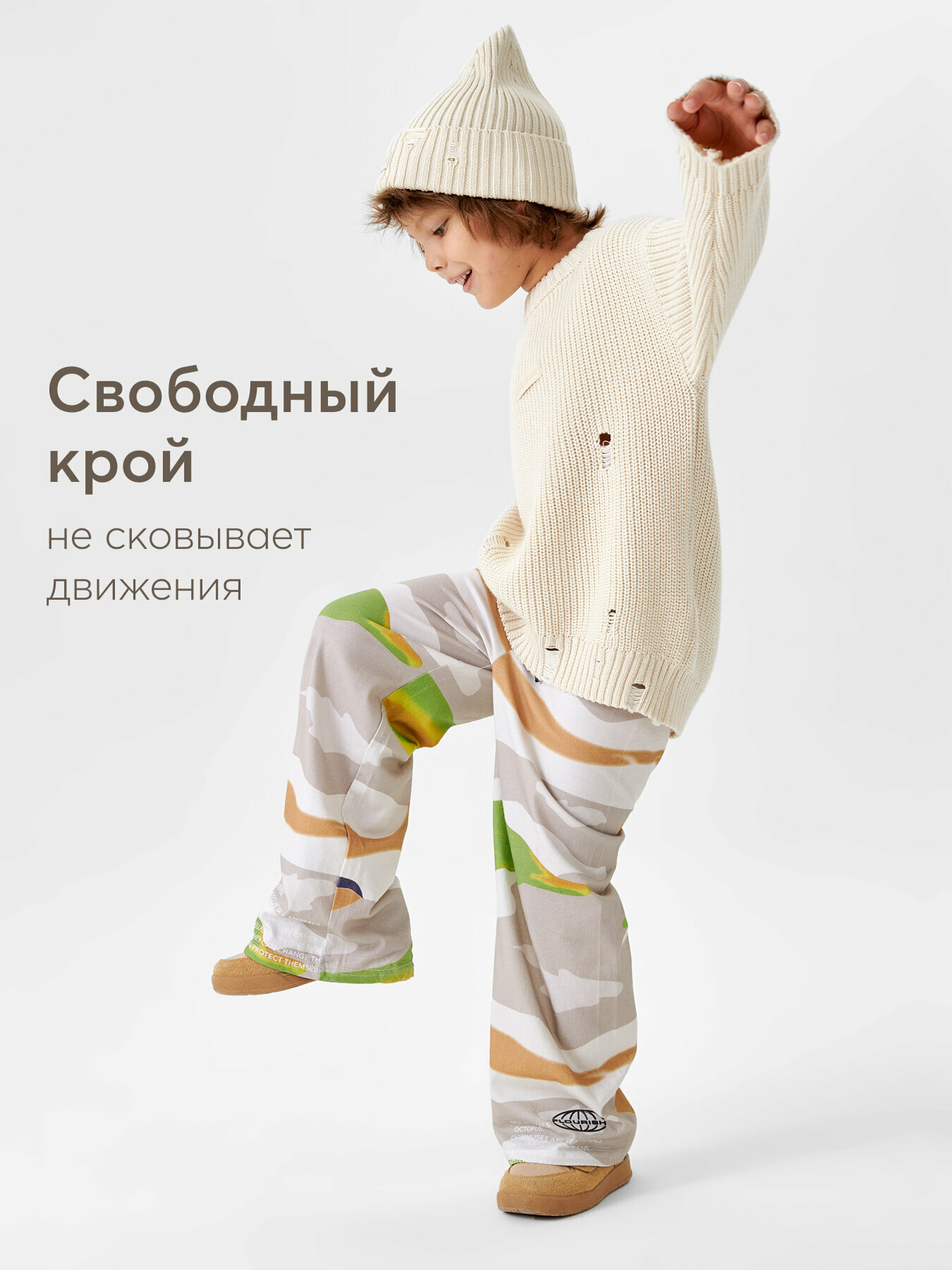 Брюки Happy Baby, размер 128-134, бежевый, коричневый, зеленый