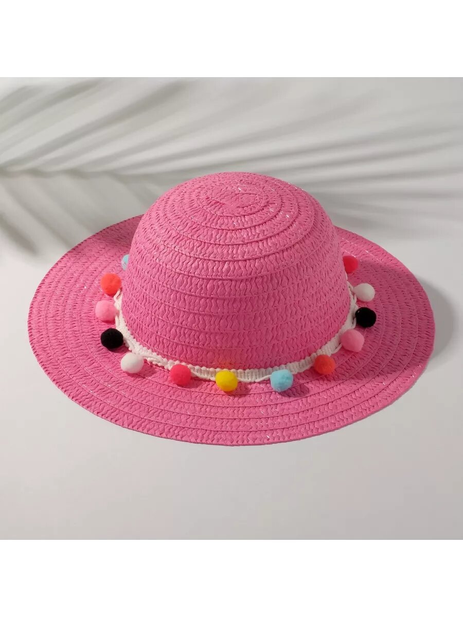 Шляпа с бомбошками для девочки MINAKU, размер 50, цвет розовый(2 шт.)