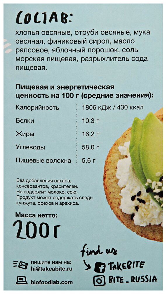 Крекеры овсяные с морской солью Bite, 200 гр интересное: