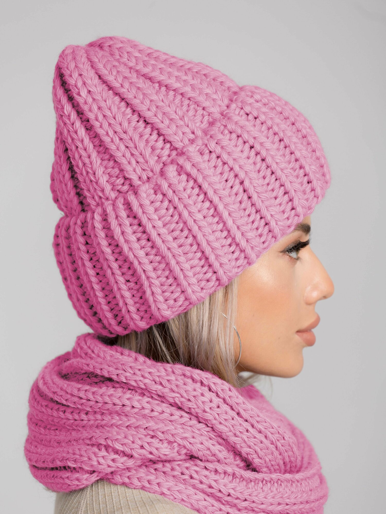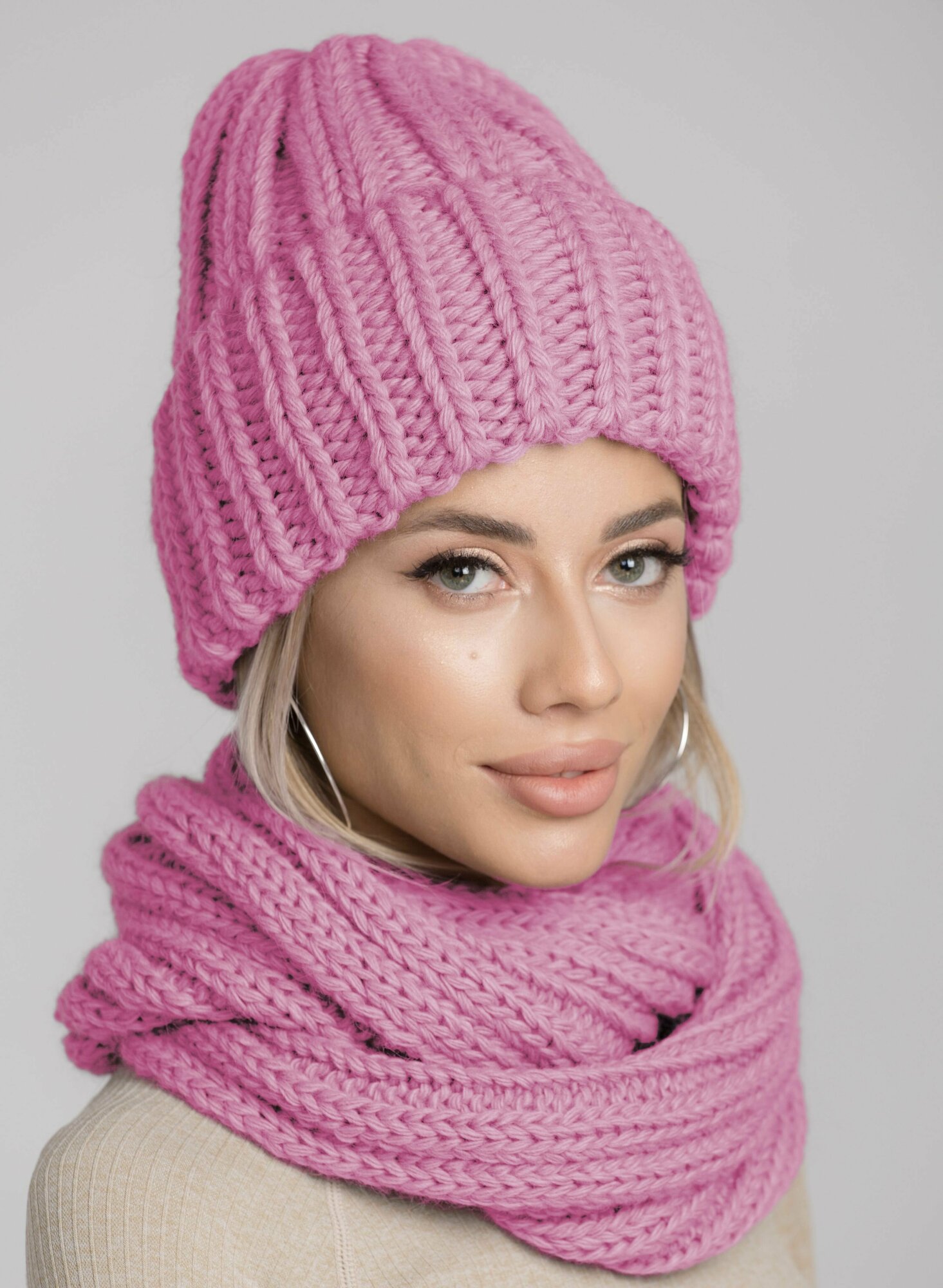 Комплект (шапка и снуд) женский, шапка вязаная бини с отворотом, теплый шарф зимний объемный крупной вязки
