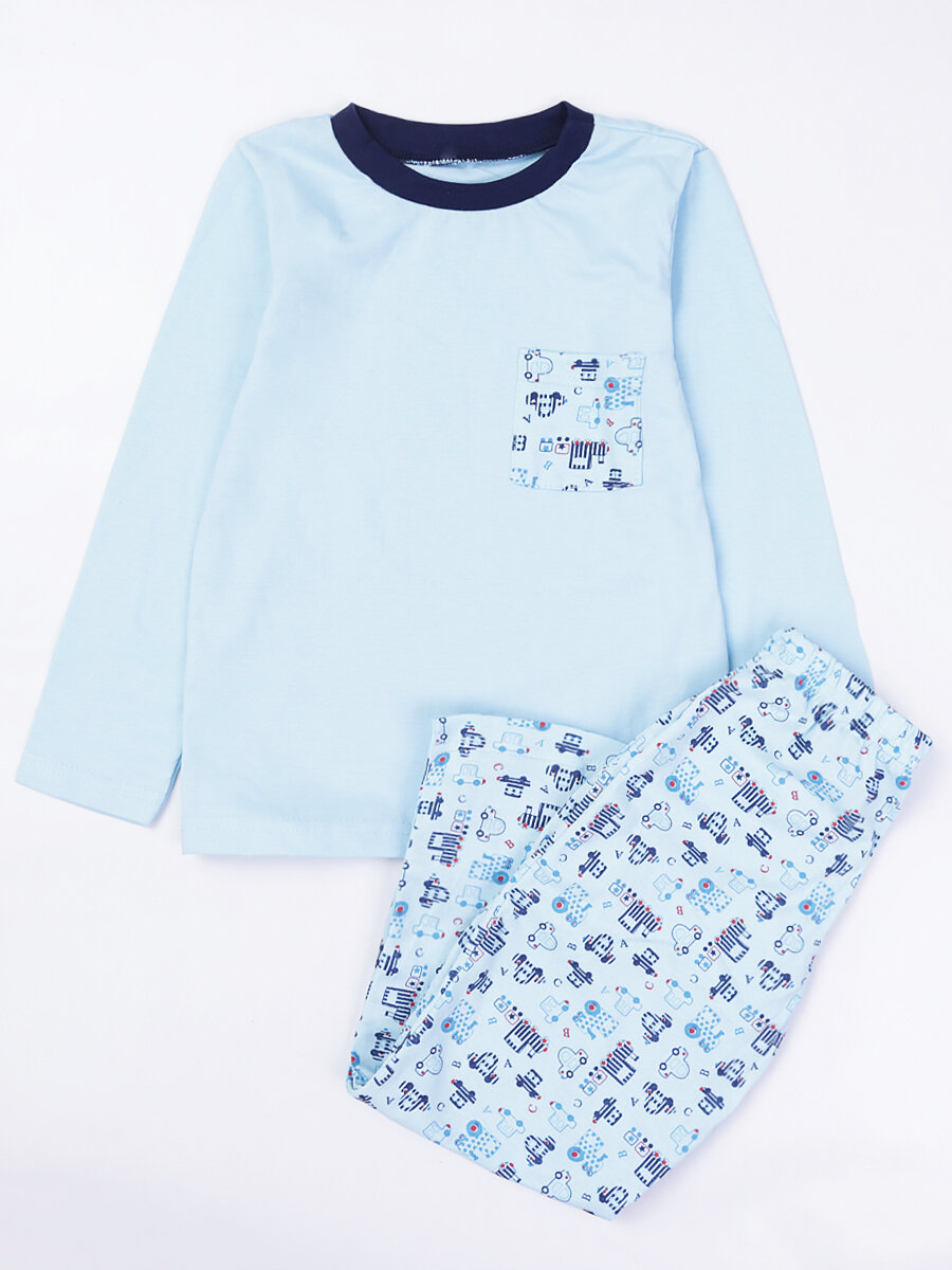 Купить 269440028 Пижама для мальчика (Брюки и футболка) Комтаркот голубая размер 128