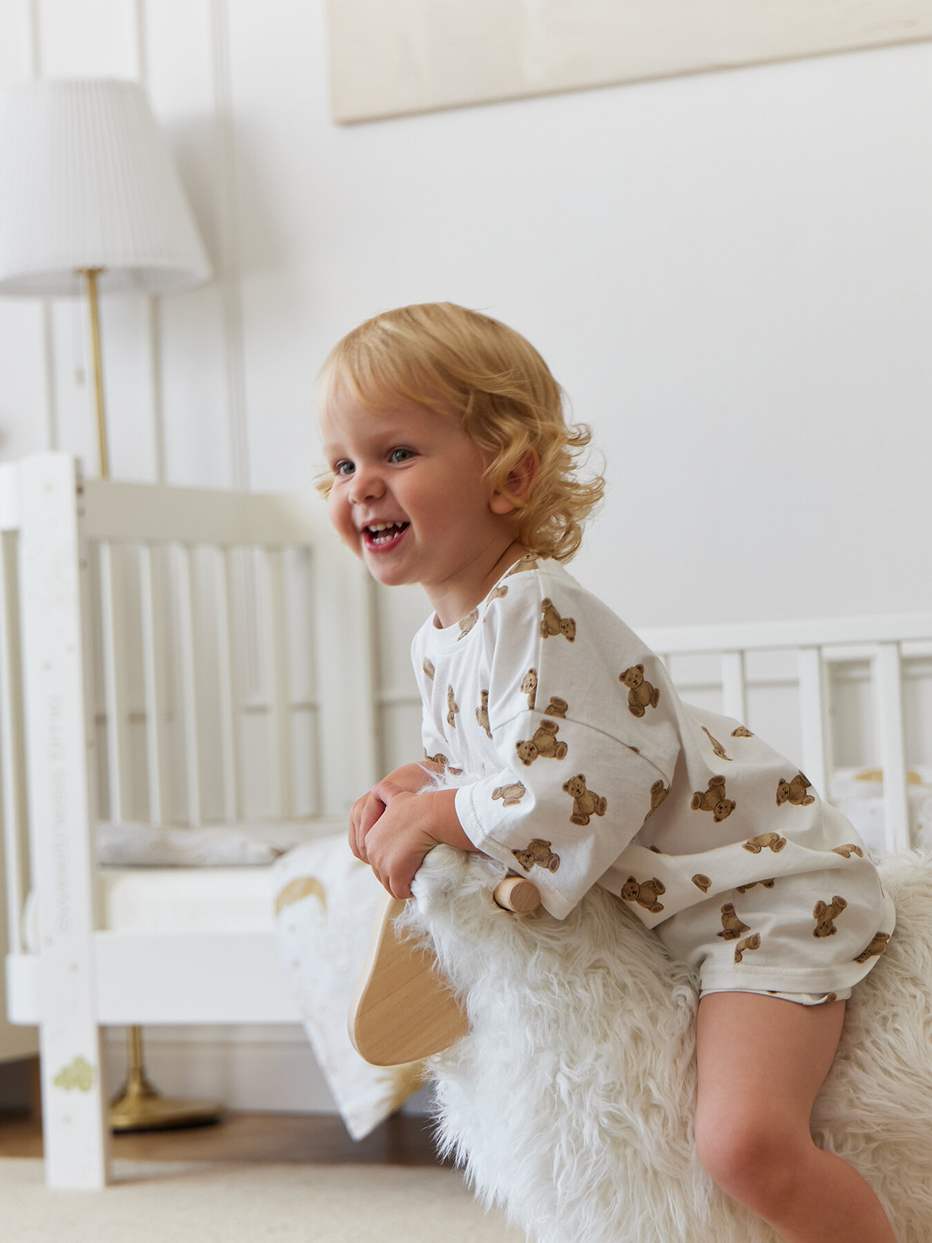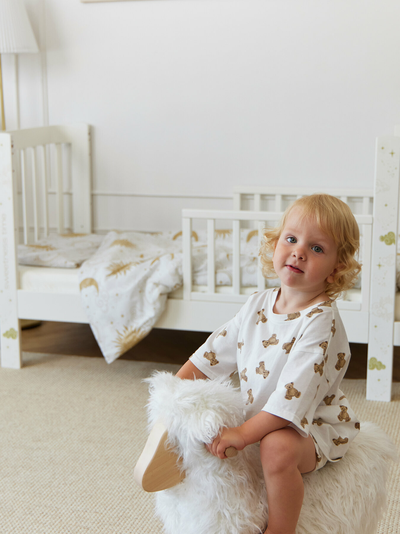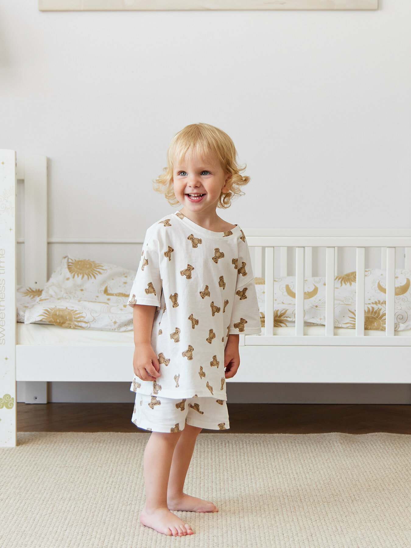 90125, Детская пижама Happy Baby, свободный крой, футболка и шорты, для девочек и мальчиков, белая с мишками, рост 110-116