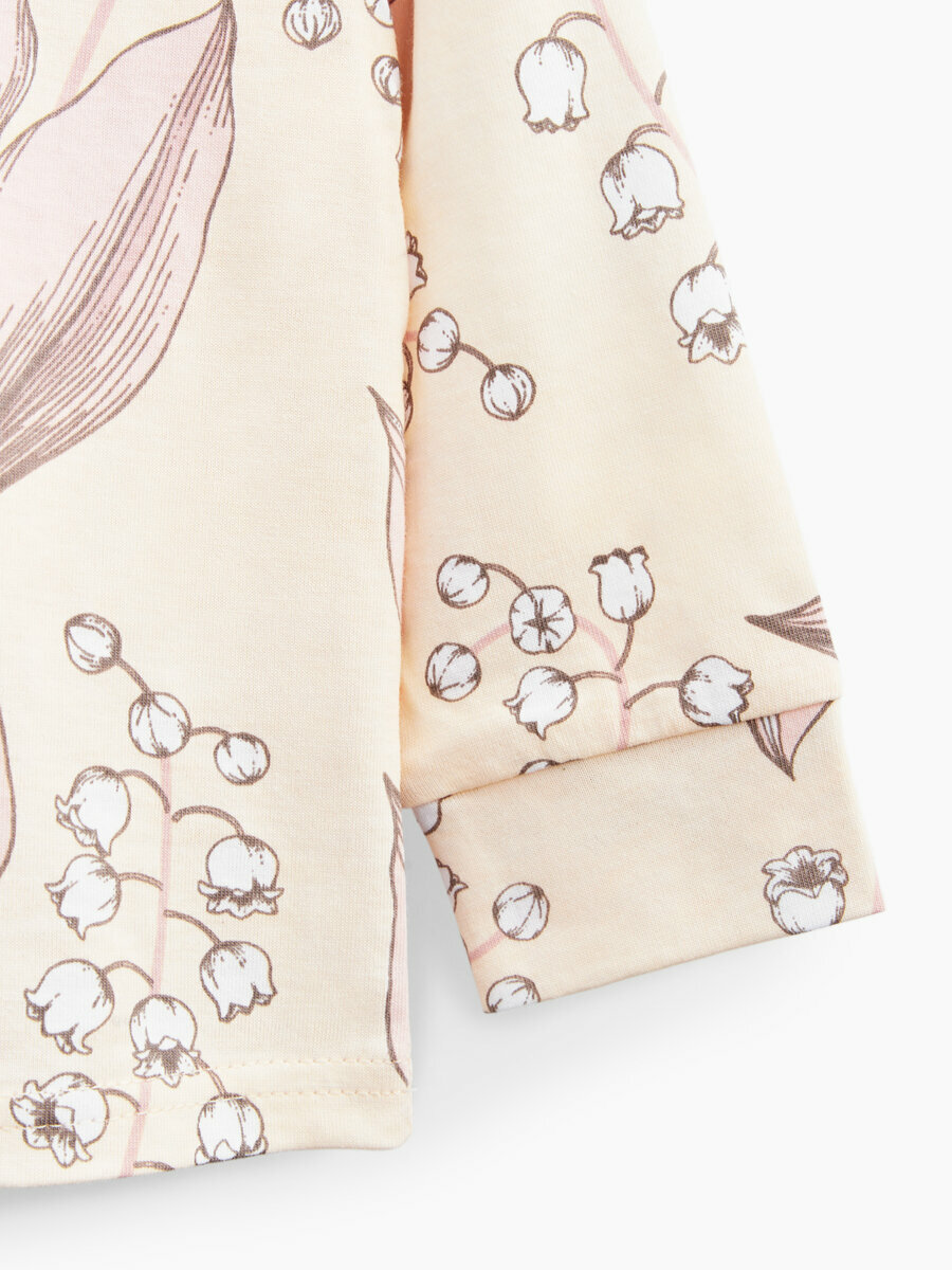 90124, Пижама детская Happy Baby, 100% хлопок, свободный крой, эластичный материал, с резинками на манжетах и штанинах, бежевая, с цветами, рост 104-110