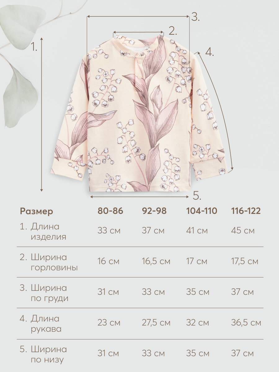 90124, Пижама детская Happy Baby, 100% хлопок, свободный крой, эластичный материал, с резинками на манжетах и штанинах, бежевая, с цветами, рост 116-122 интересное: