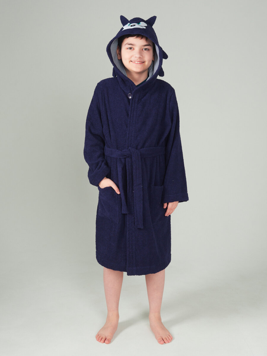 Халат детский Wesen "Ежик" арт. 22038, цвет: темно-синий, размер 140-146