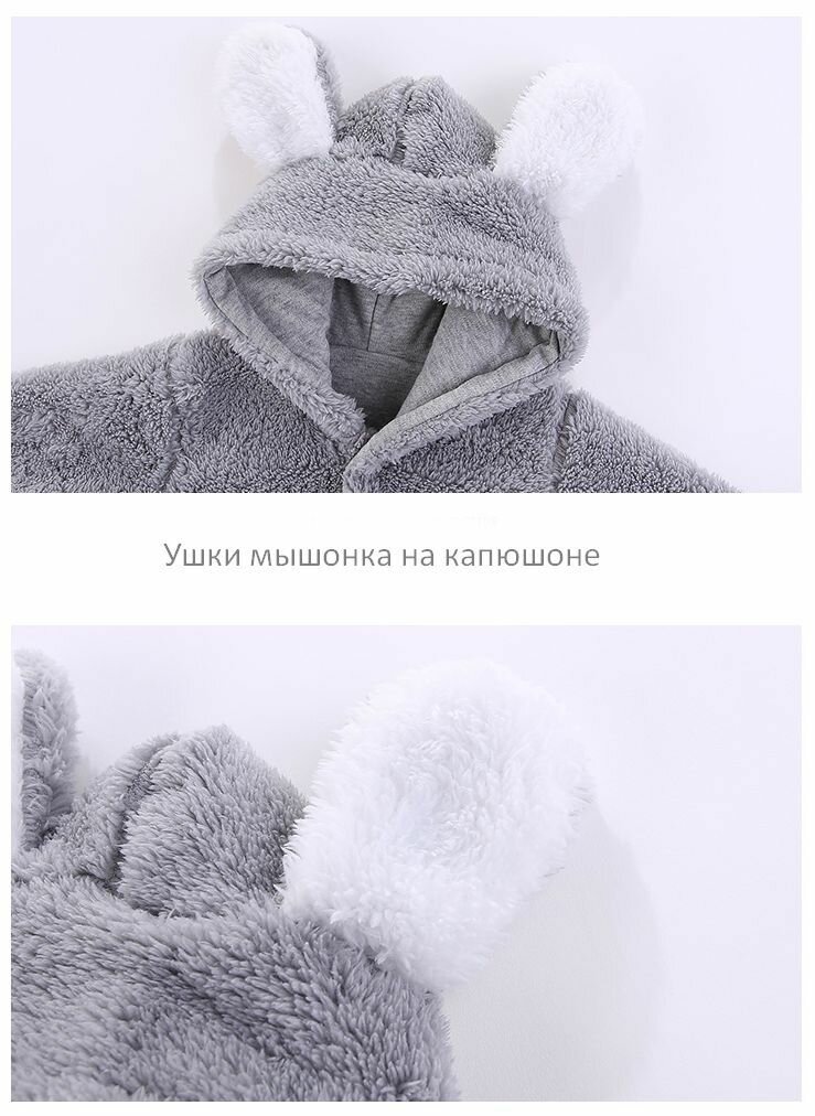 Комбинезон без утеплителя для новорожденного, плюшевый для малышей, демисезонный, Мышонок - Серый - размер 80 (76-80) H3