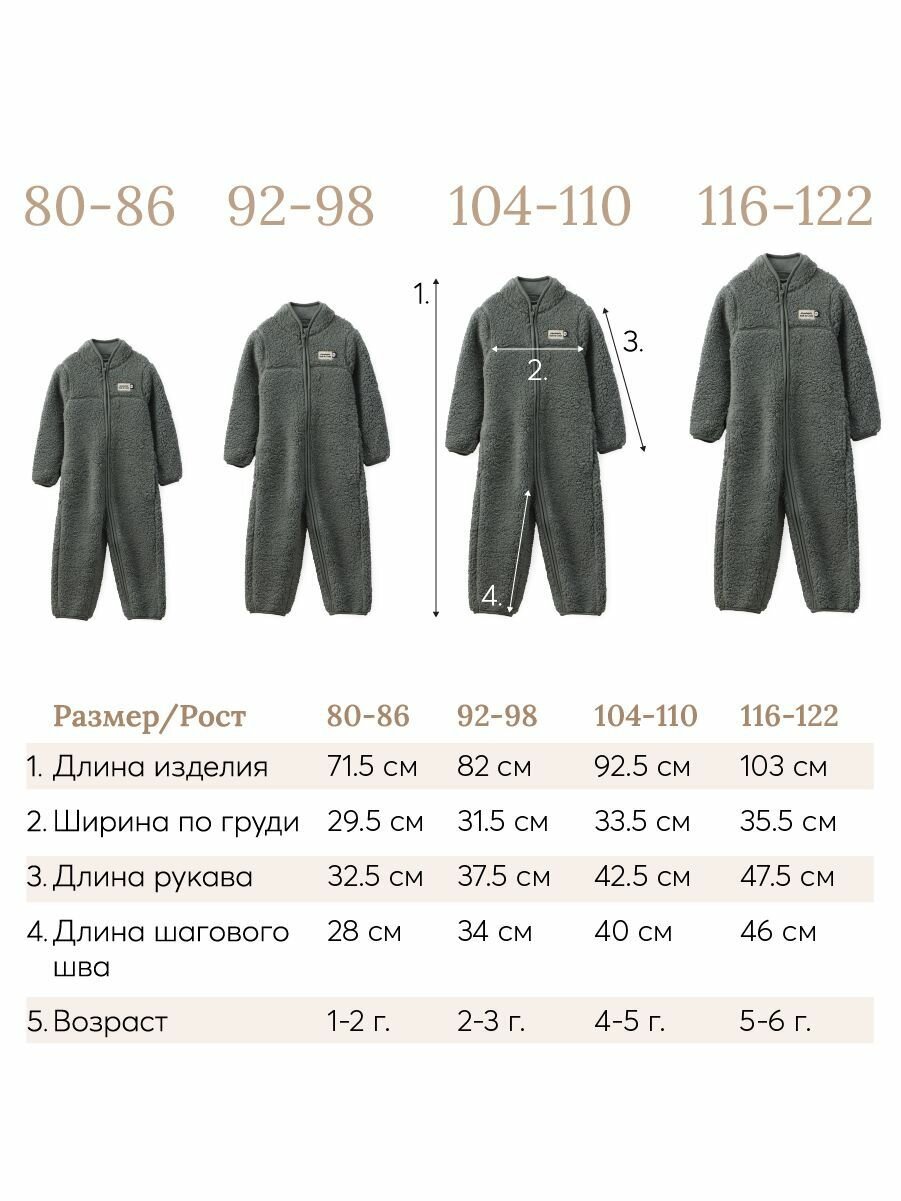 89058, Комбинезон детский Happy Baby, утепленный, флисовый, демисезонный для девочки и мальчика, коричневый, размер 92-98