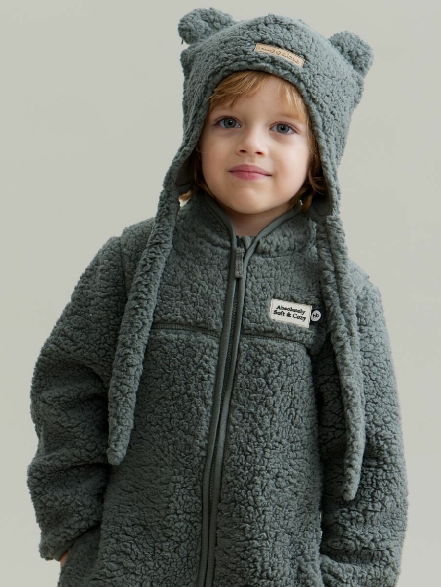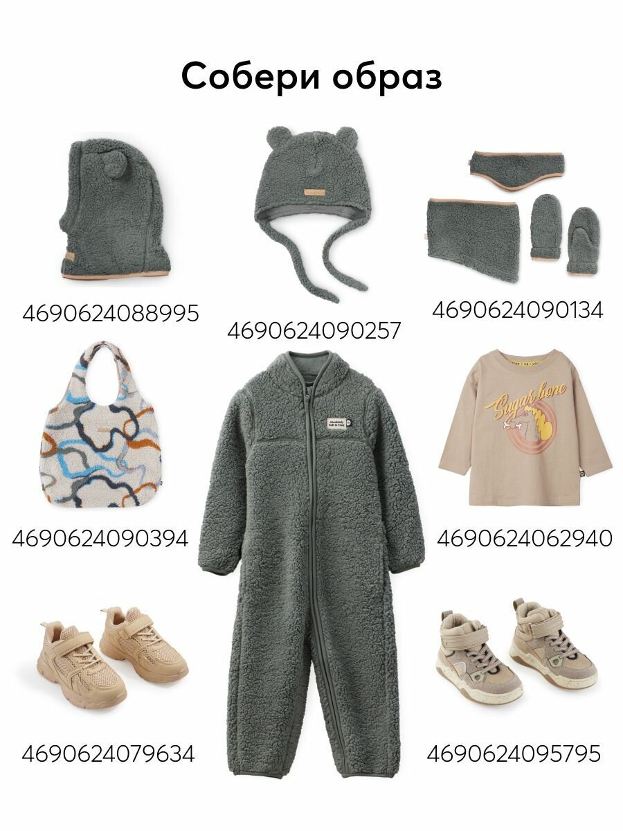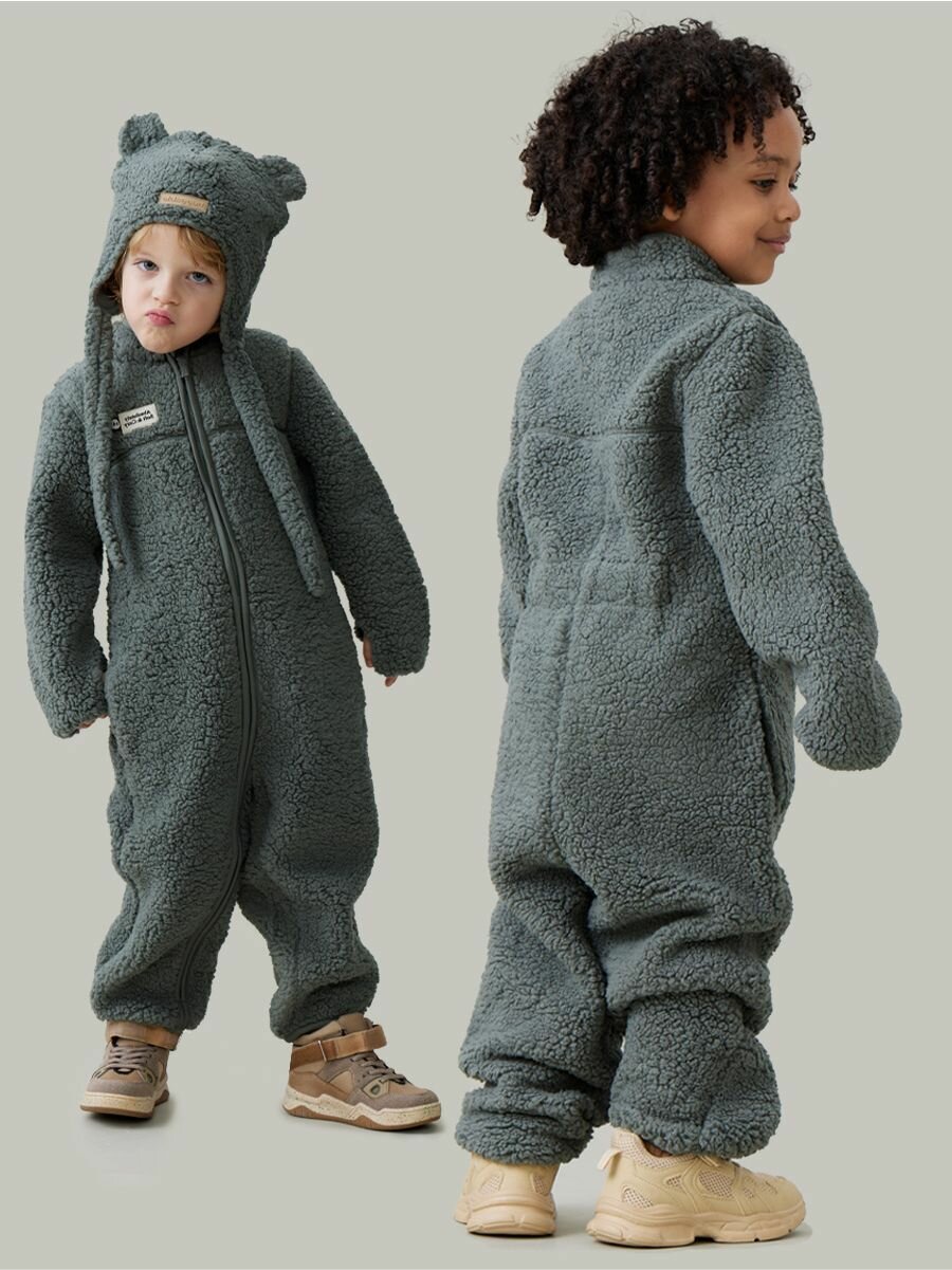 89058, Комбинезон детский Happy Baby, утепленный, флисовый, демисезонный для девочки и мальчика, серый, размер 104-110