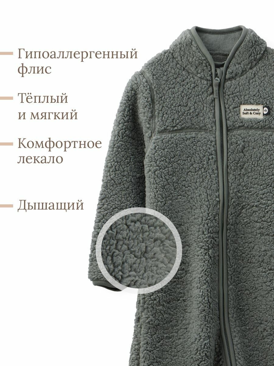89058, Комбинезон детский Happy Baby, утепленный, флисовый, демисезонный для девочки и мальчика, серый, размер 80-86