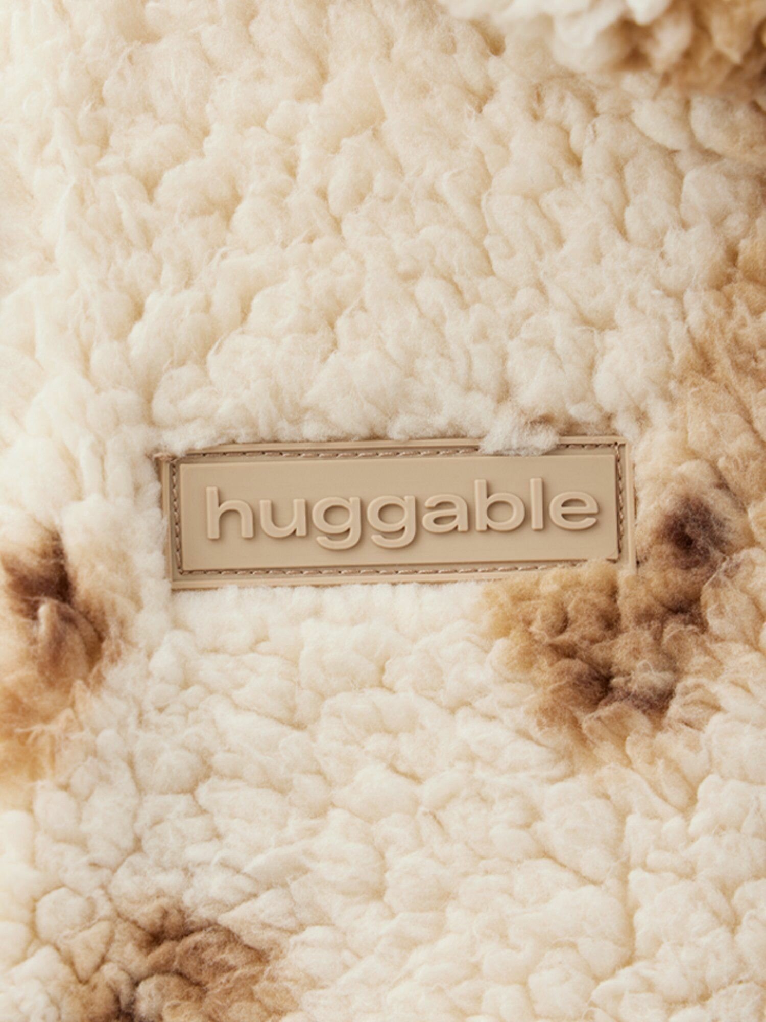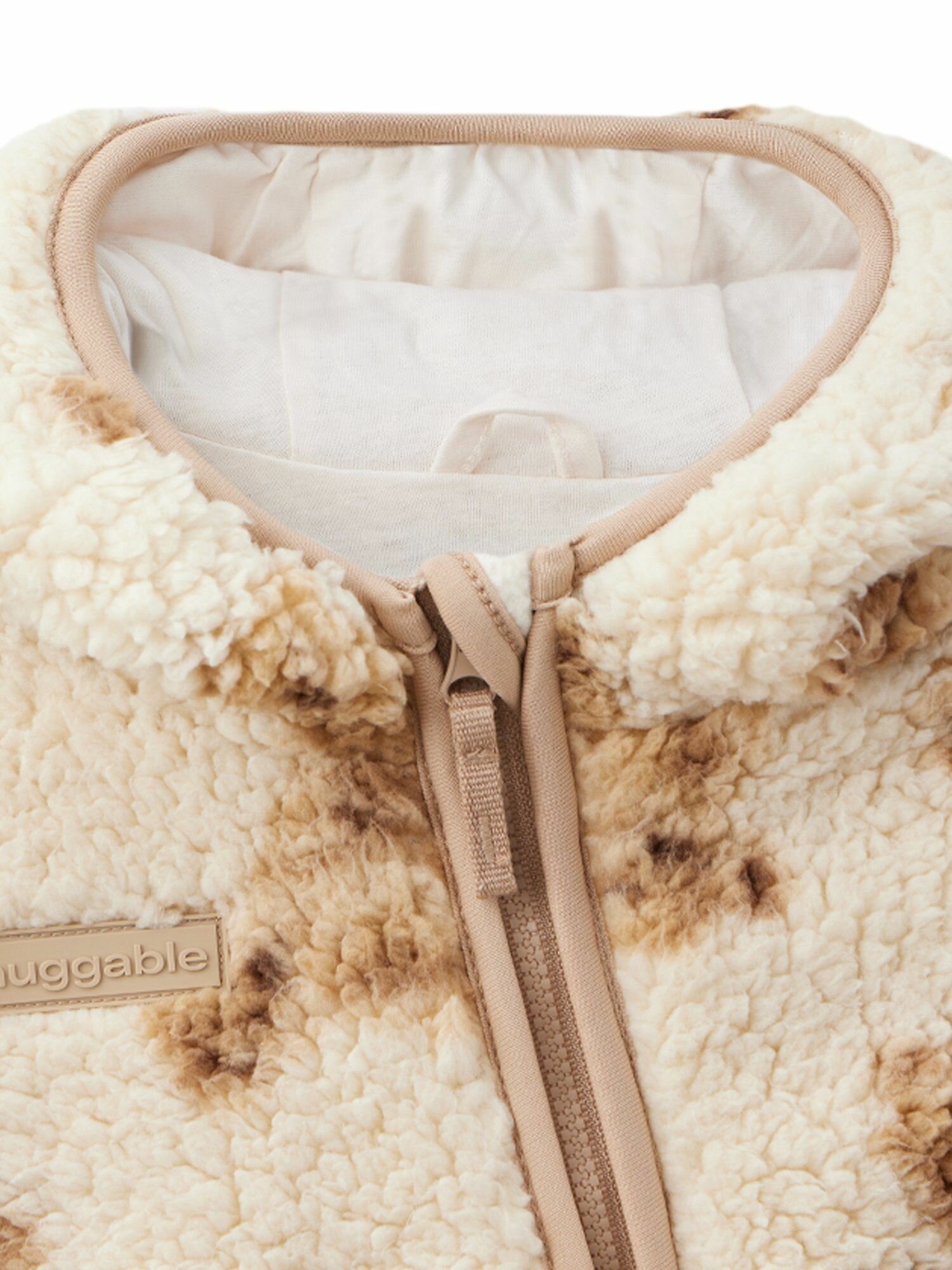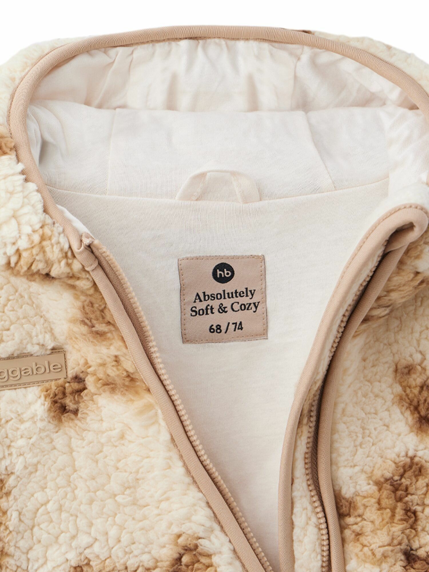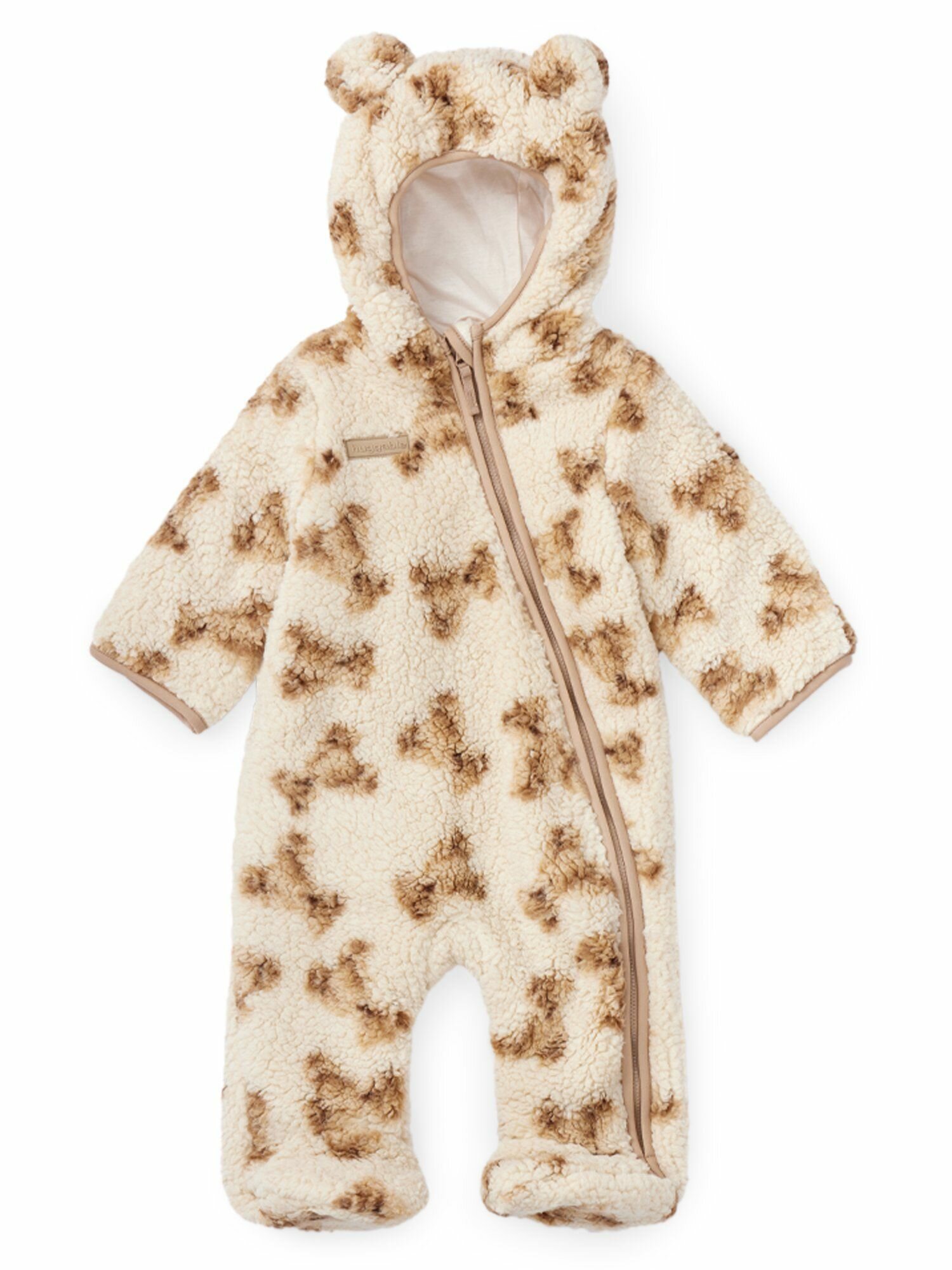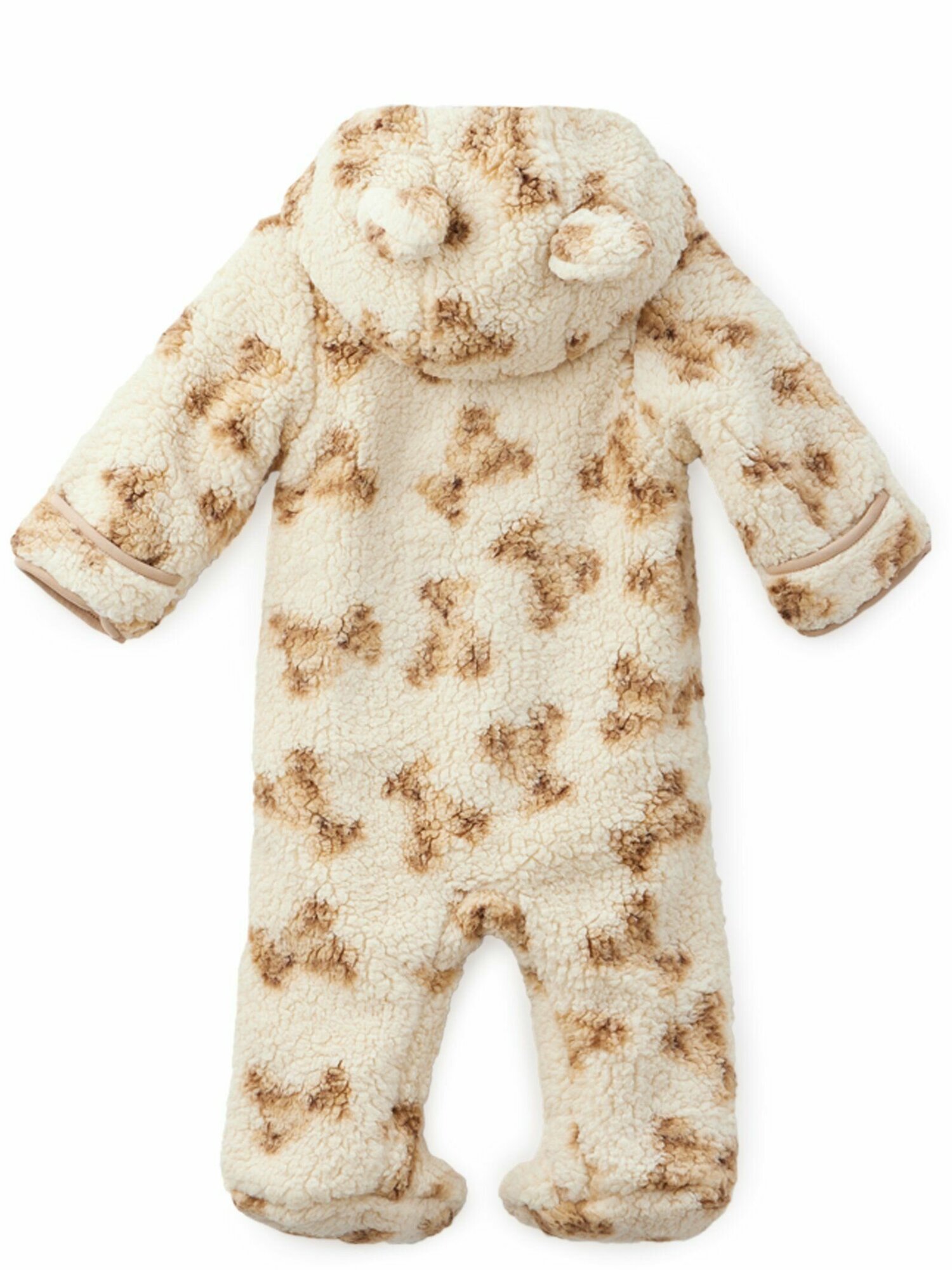 89055, Комбинезон детский флисовый Happy Baby, для новорожденных, под верхнюю одежду, с капюшоном, с ушками, бежевый с мишками, рост 68-74