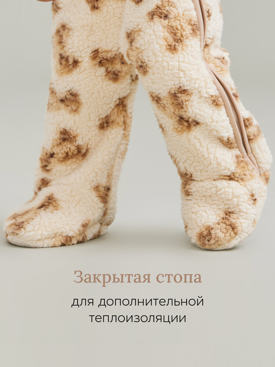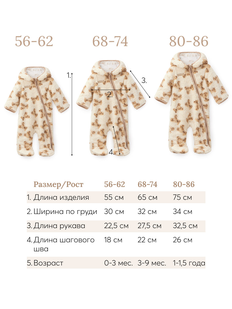 Сохранить89055, Комбинезон детский флисовый Happy Baby, для новорожденных, под верхнюю одежду, с капюшоном, с ушками, бежевый с мишками, рост 80-86 интересное: