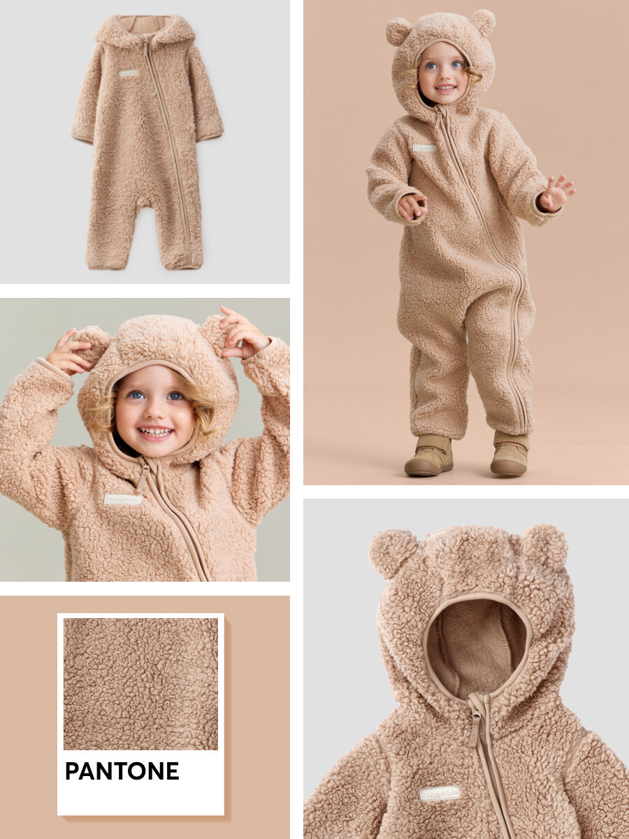 Сохранить89055, Комбинезон детский флисовый Happy Baby, для новорожденных, под верхнюю одежду, с капюшоном, с ушками, коричневый, рост 56-62 интересное: